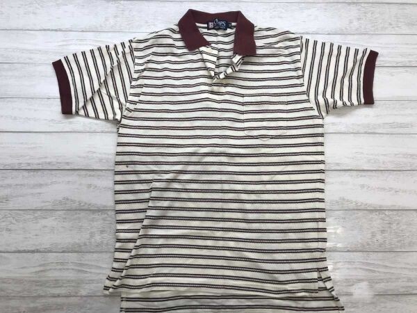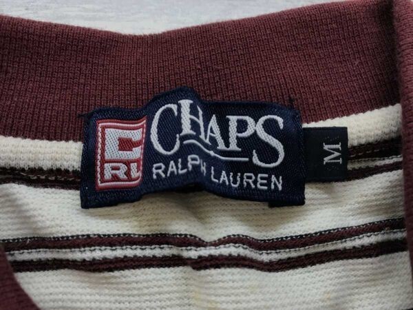 チャップス ラルフローレン CHAPS RALPH LAUREN アメカジ ボーダー トリム 鹿の子 半袖ポロシャツ メンズ コットン混 日本製 M エンジ です。
