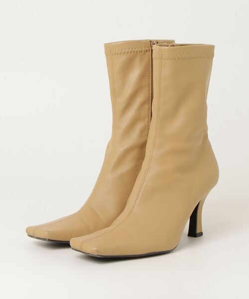 キーワード:ブーツ レディース ヒール ピンヒール プレーントゥ ミドル 紐なし 秋 冬