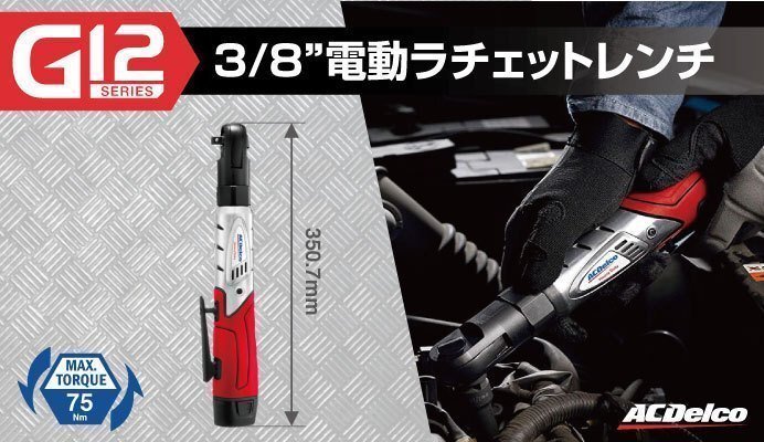 ●品番:ARW1208 ●差込角:3/8インチ ●最大トルク:75N・m ●回転数:0-170RPM ●サイズ:46.2x52.1x350.7mm ●重量:1.4kg ●同梱品:本体x1、専用ケースx1、バッテリーx1 ※充電器は付属しません。 別途ADC12JP07-C15をお求めください。 ■オプション品 : 充電器 : ADC12JP07-C15 バッテリー : AB1207LA ■メーカーホームページは 「こちら」 からご覧いただけます