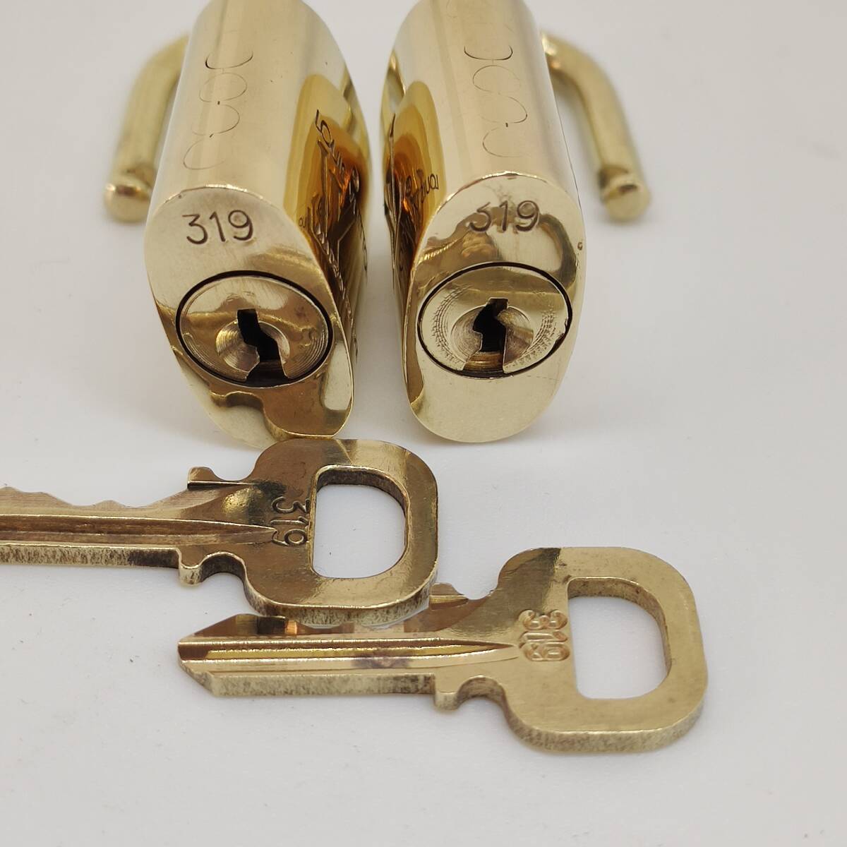 サ イ ズ :約 W2.2cm×H3.8cm×D1.1cm カ ラ ー :ゴールド 付 属 品 :ございません 鍵 番 号 : No.319(南京錠2個、鍵2個) |