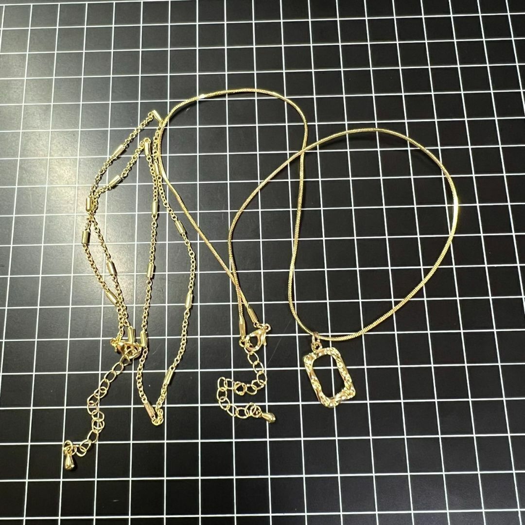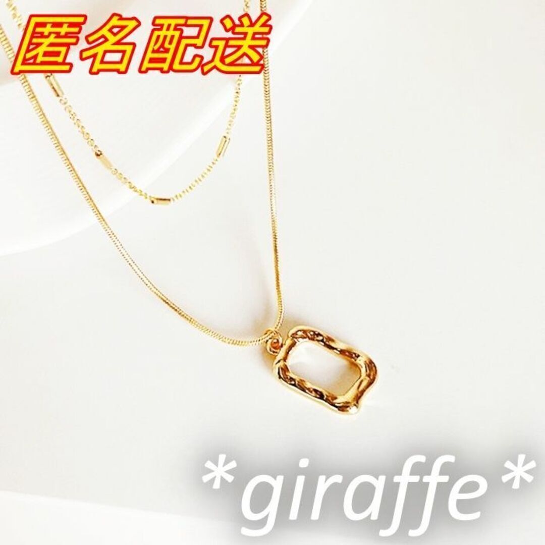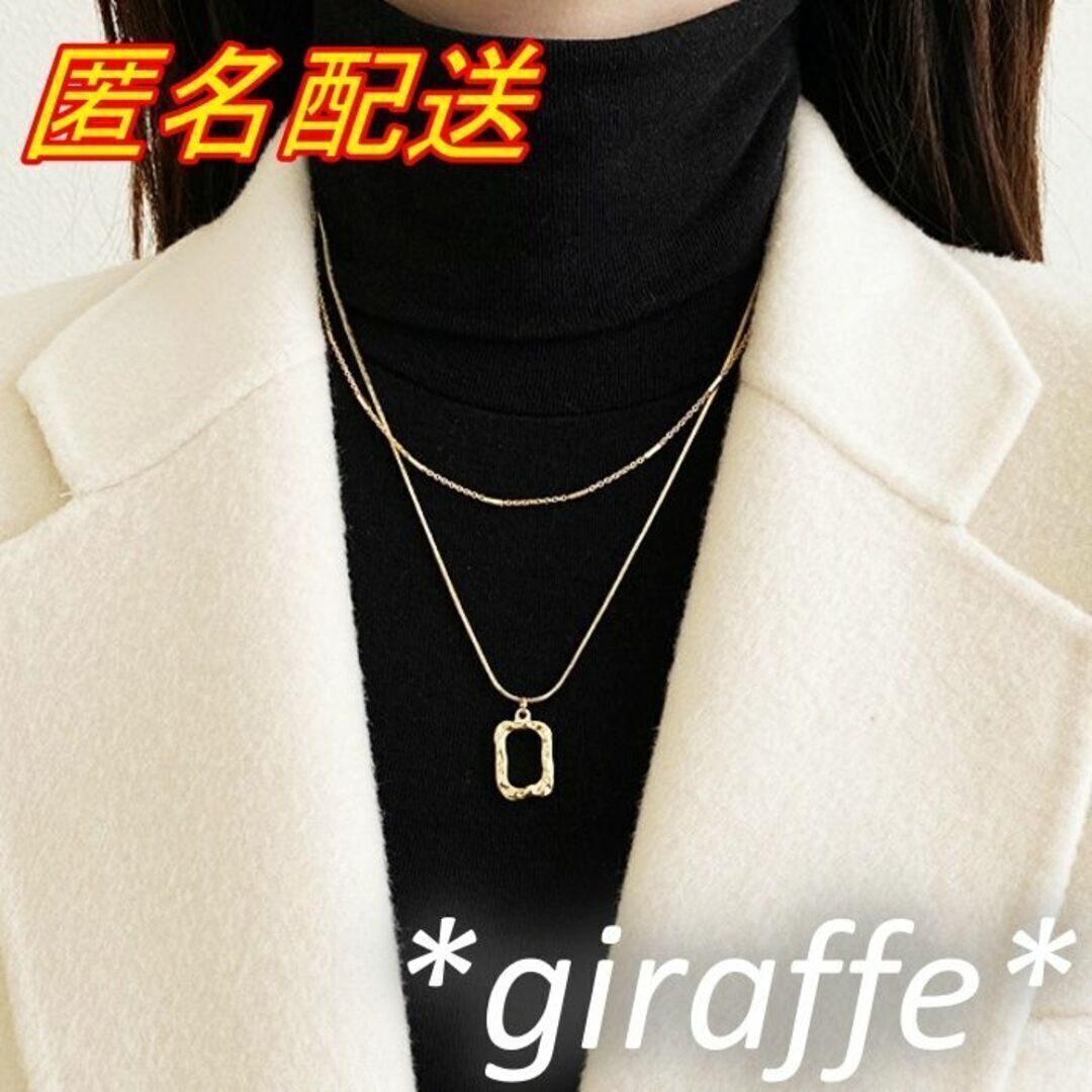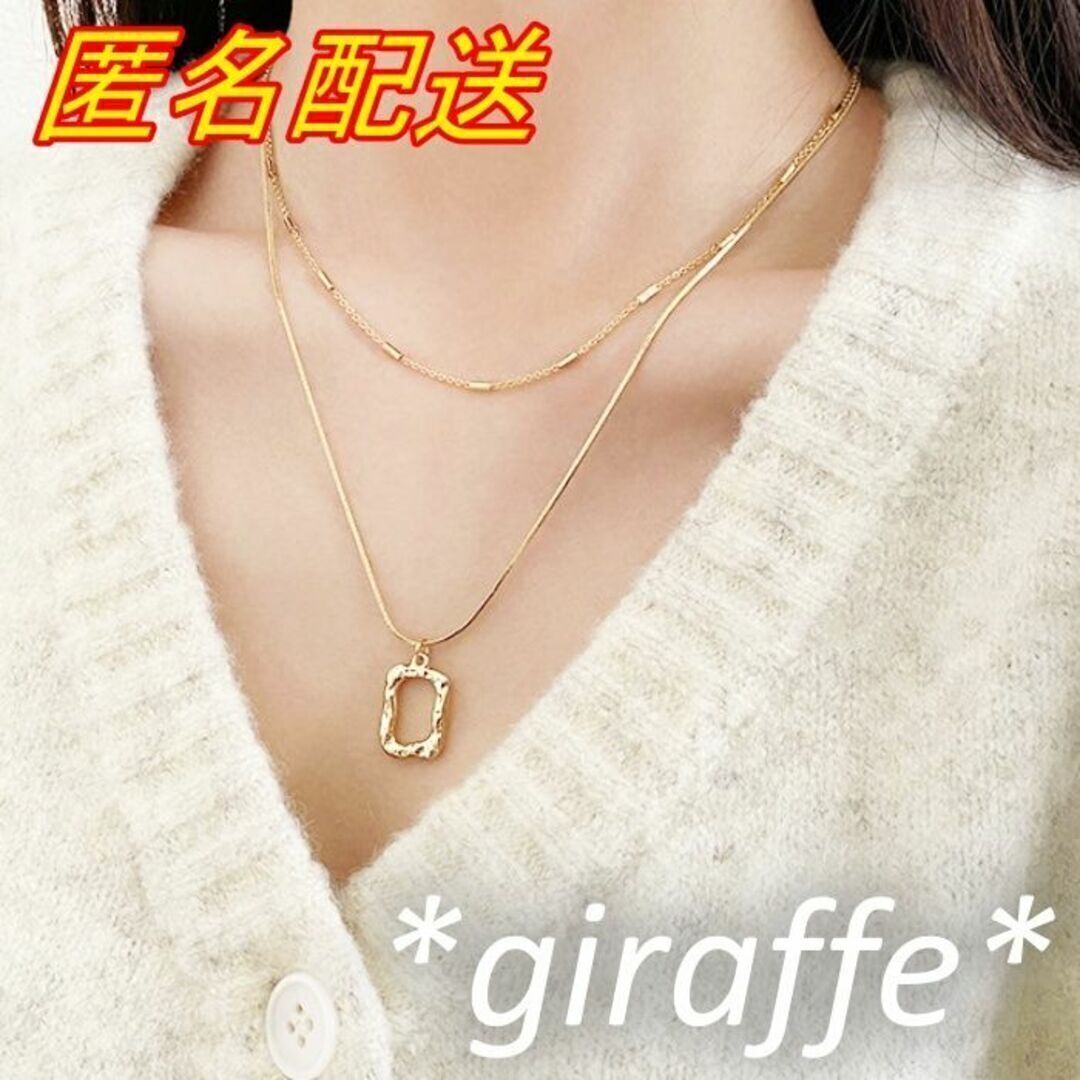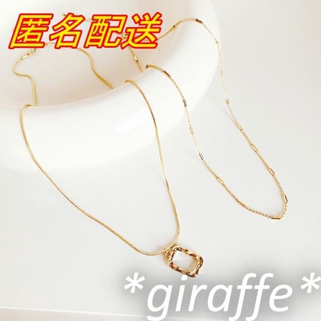 C281 匿名配送 ネックレス レディース メンズ 2本セット 重ね付け ゴールド チェーン 長方形モチーフ 四角 上品 スタイリッシュ