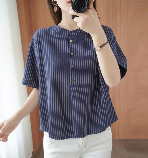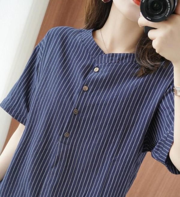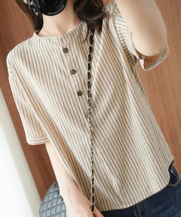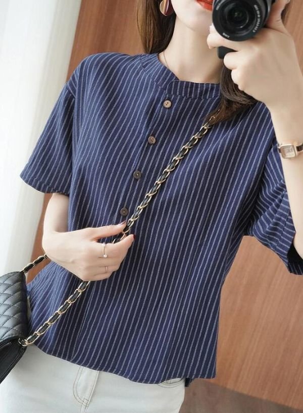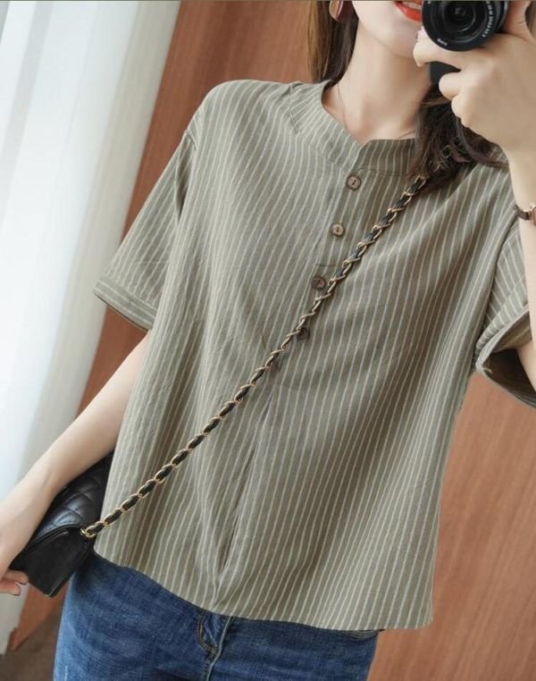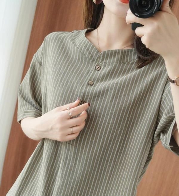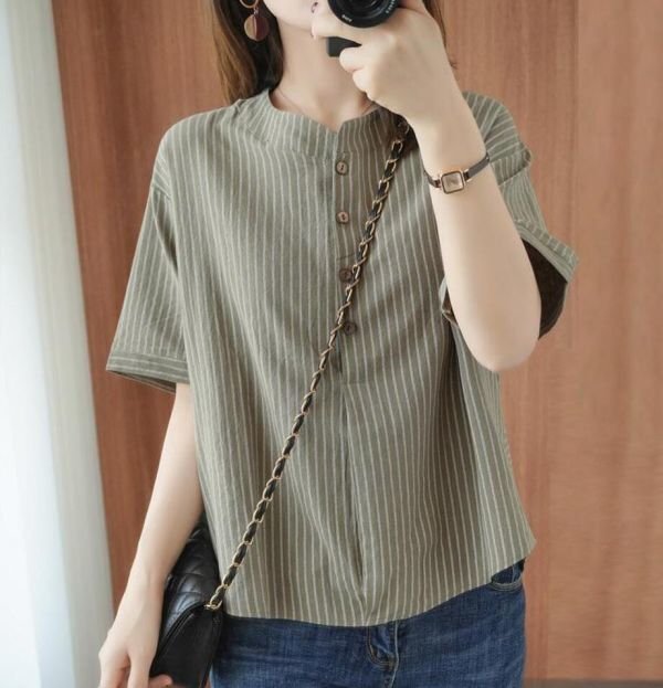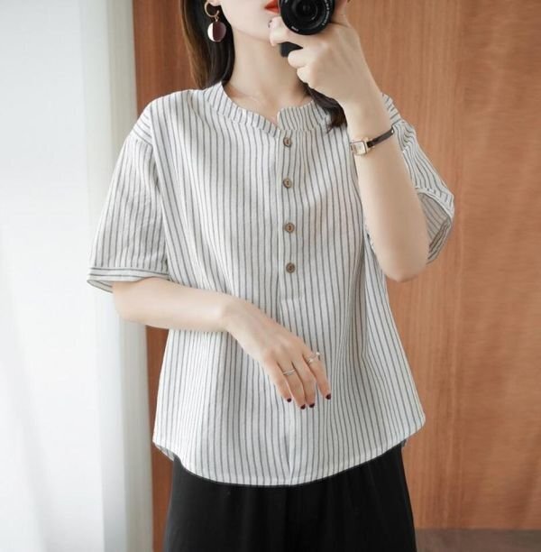 ブラウス レディース トップスボーダー柄 可愛い大人シャツ シンプル ゆったり チュニック★白 /Mサイズ