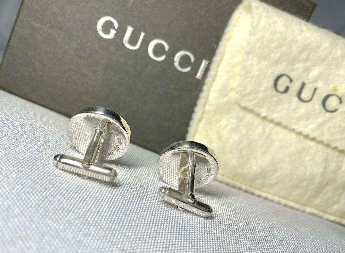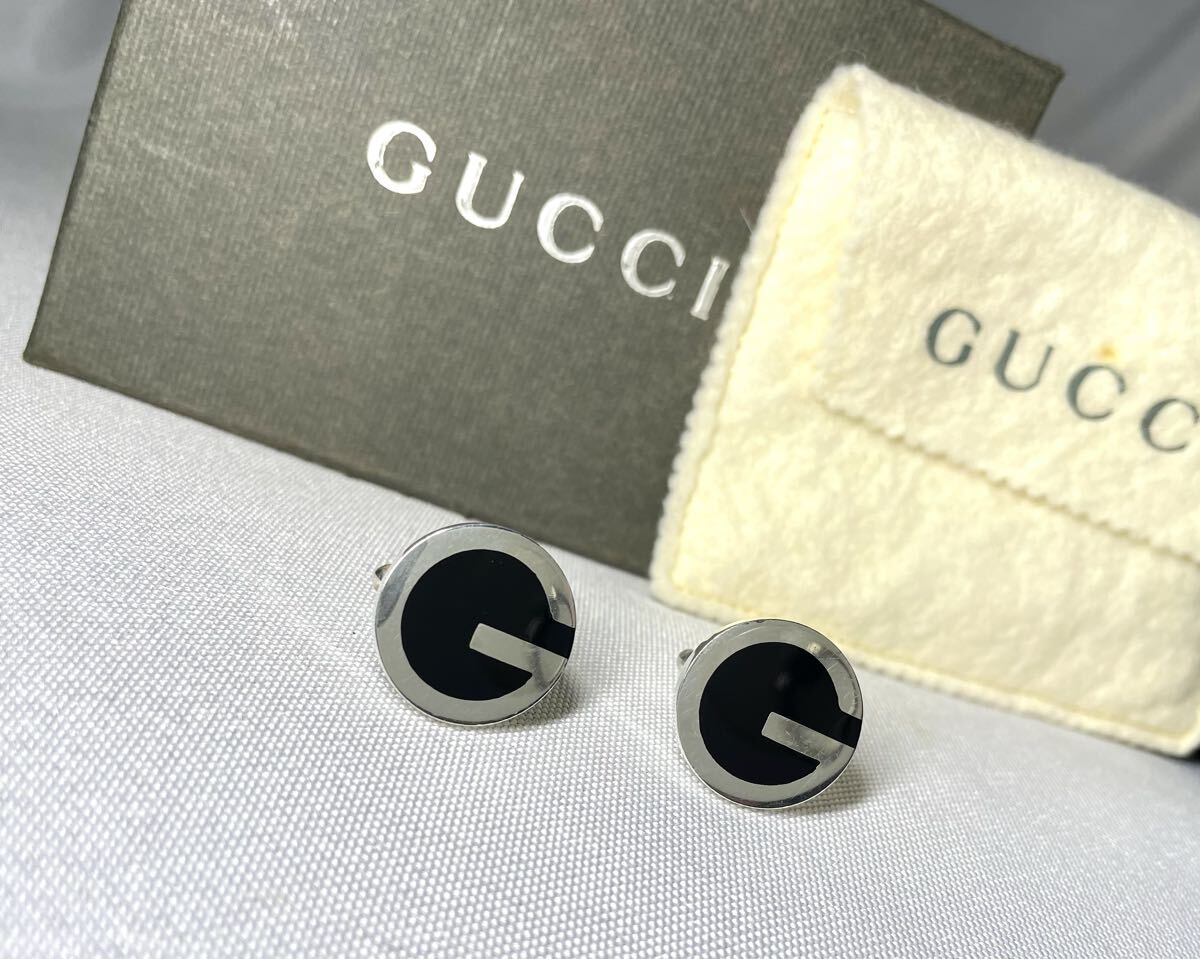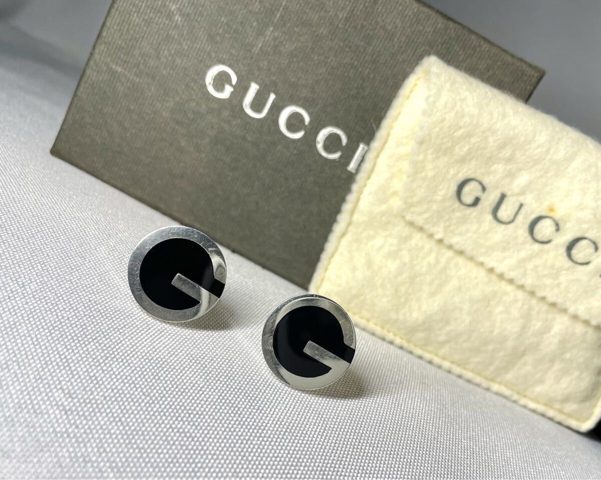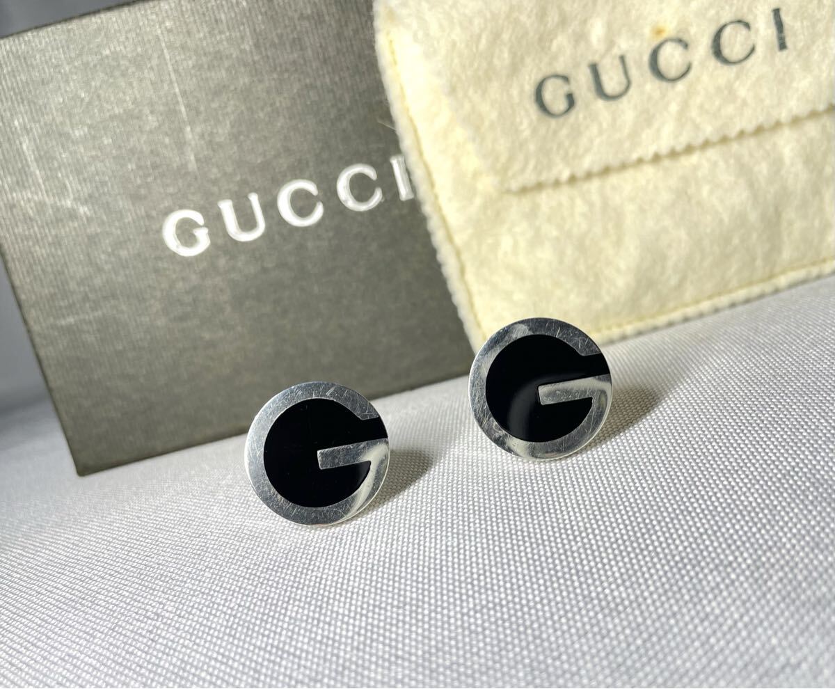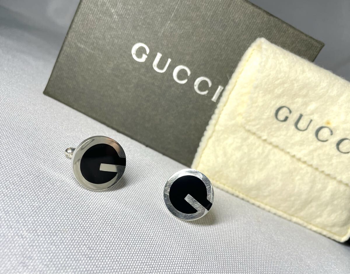 即決希少 GUCCI グッチ Gデザイン スターリングシルバー & ブラック オーバル ヴィンテージカフス カフリンクス ボタン SV925 付属品あり