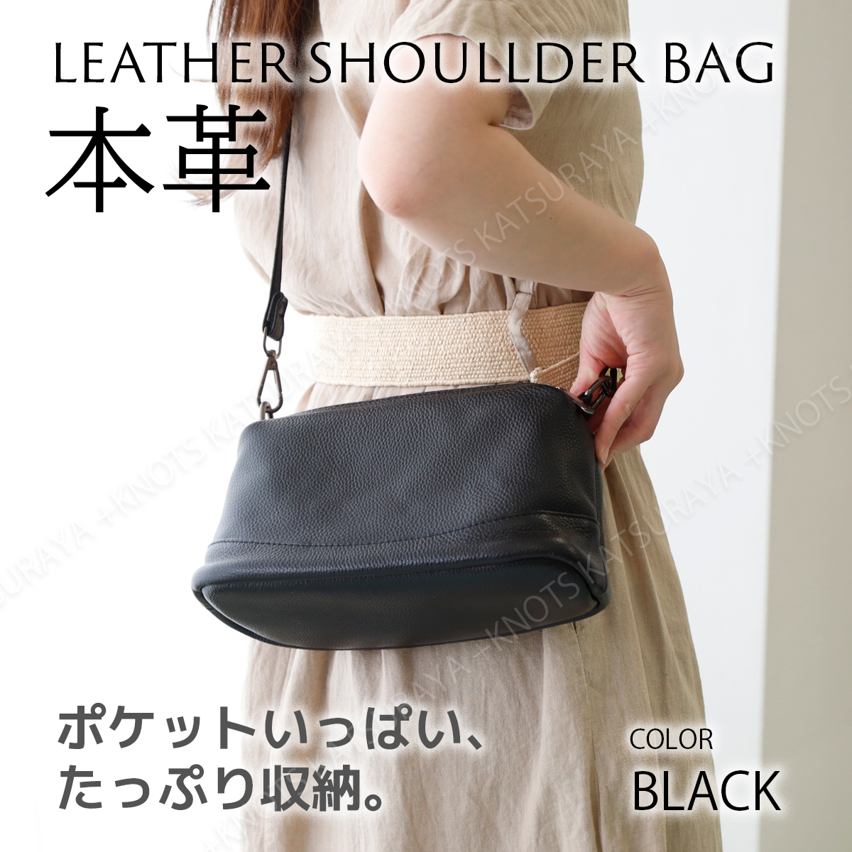 ミニショルダーバッグ スマホポーチ 本革★ブラック黒★牛革 レザー ミニバッグ 肩掛け レディース スマホ ショルダー 斜め掛けa386