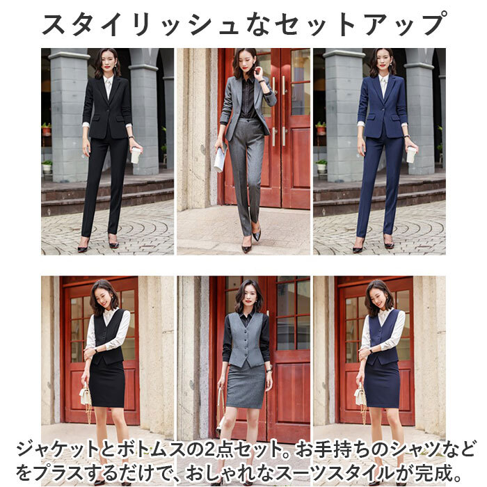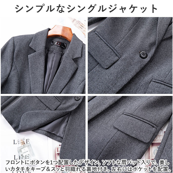 商品説明 | ・・色んなシーンで大活躍!かっこよくキマる、レディーススーツセットが新登場。 ・【スタイリッシュなセットアップ】 ・ジャケットとボトムスの2点セット。お手持ちのシャツなどをプラスするだけで、おしゃれなスーツスタイルが完成。 ・【シンプルなシングルジャケット】 ・フロントにボタンを1つ配置したデザイン。ソフトな肩パッド入りで、美しいカタチをキープ&スッと羽織れる裏地付き。左右にはポケットを配置。 ・【すっきり魅せる2種類のボトムス】 ・フロントファスナー&ボタン付きのパンツと、バックファスナー付きのスカートはどちらもボディラインにすっと馴染む!パンツは片ポケット付き。 ・【体に負担をかけず着心地軽やか】 ・程よい厚みの生地感で、サラッと着用できてストレスフリー◎ ・【色んなシーンで活躍するカラー】 ・落ち着きのあるベーシックカラーをご用意。ビジネスやフォーマルシーンにぴったり。 |