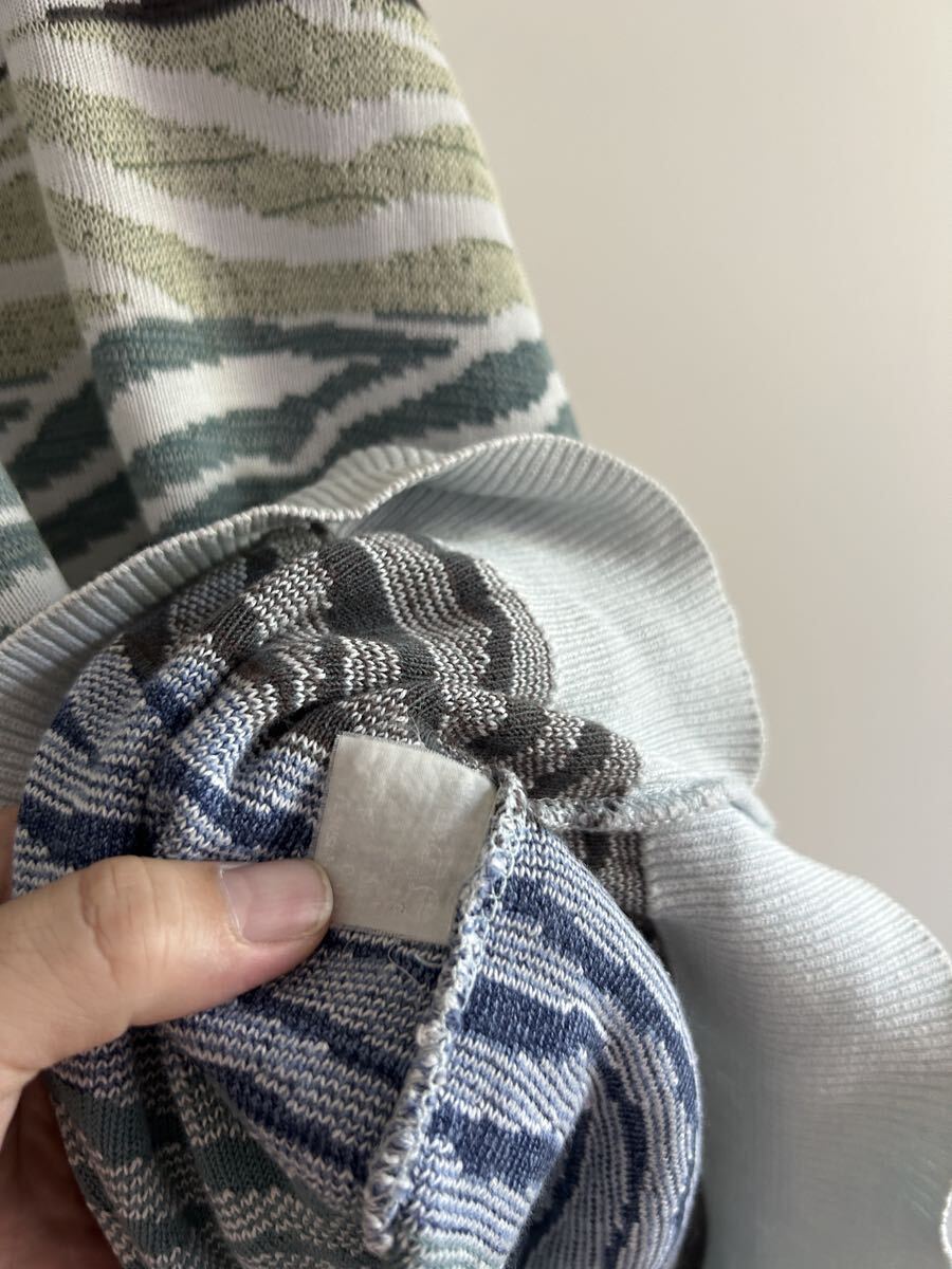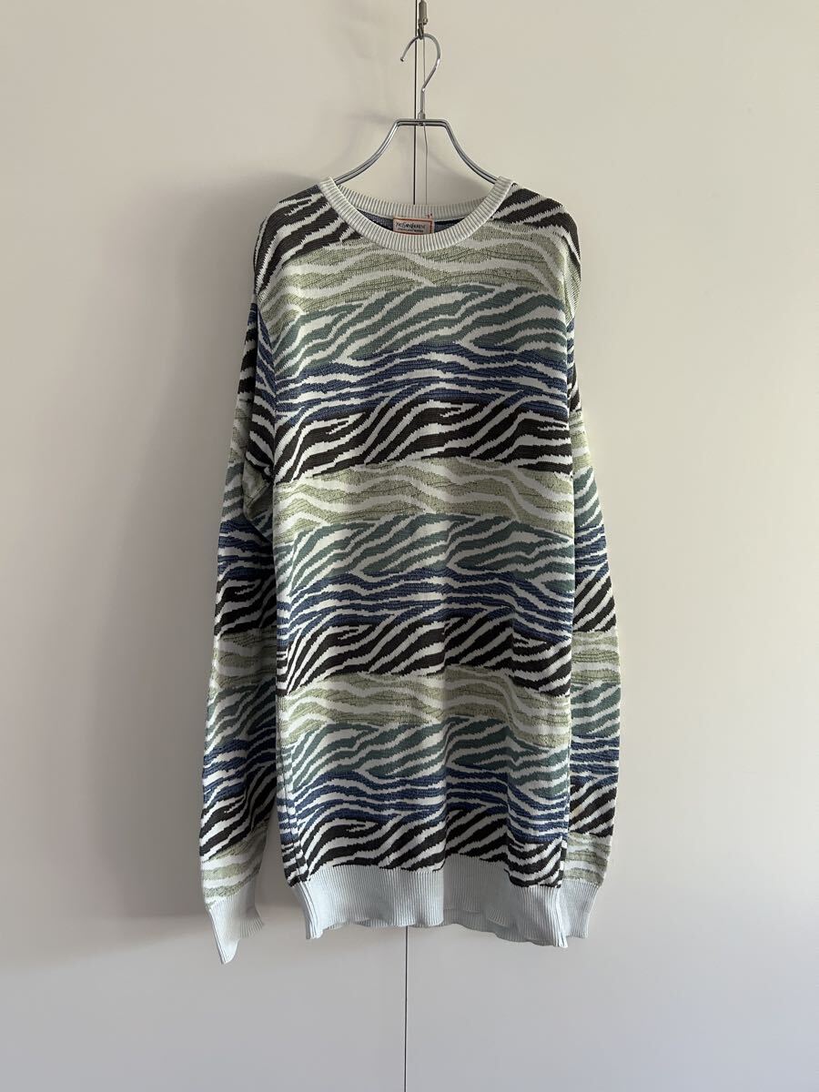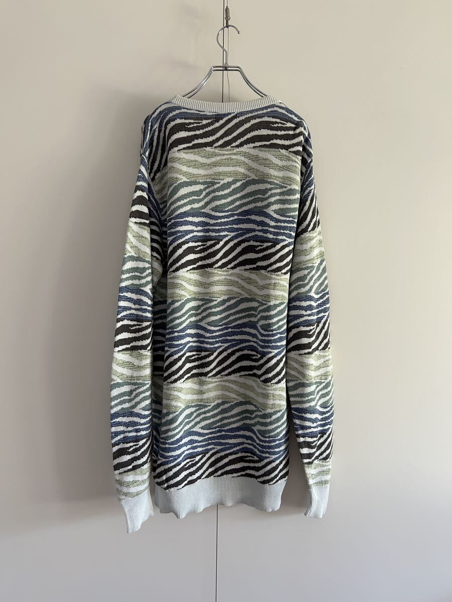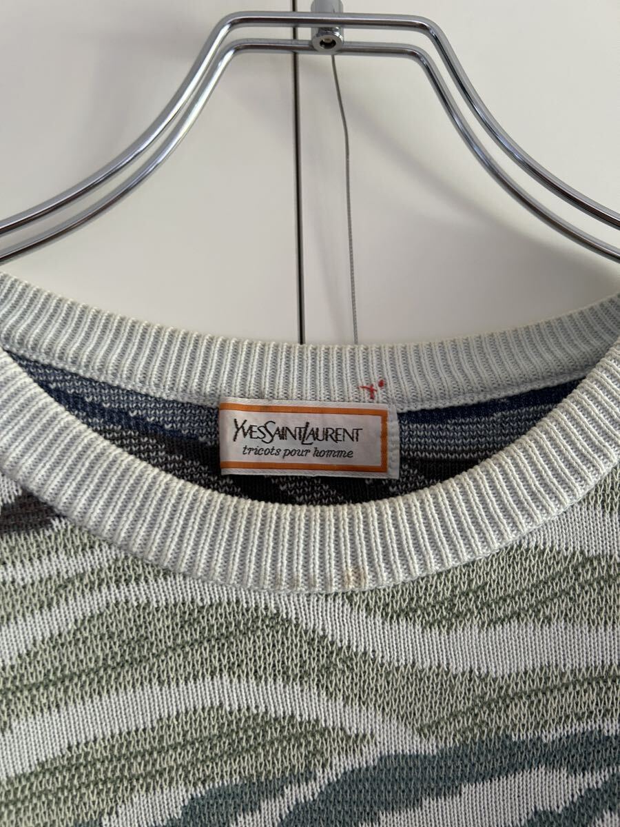 90年代のアーカイブラインから見られる、イヴサンローラン「tricot pour homme」のゼブラ調ジャカードニット。