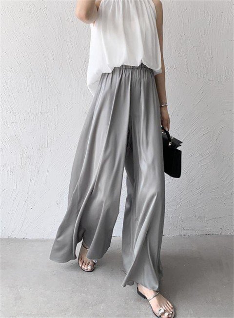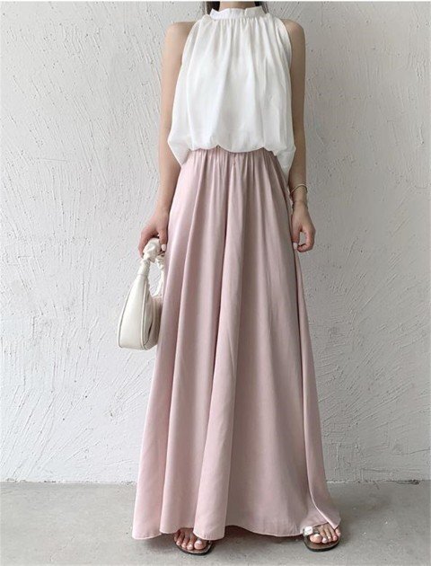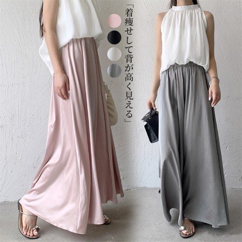ロングパンツ ワイドパンツ フレアパンツ きれいめ シンプル オフィスカジュアル OL 通勤 L ピンク