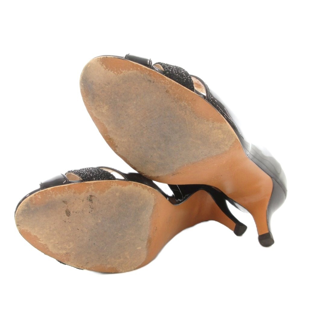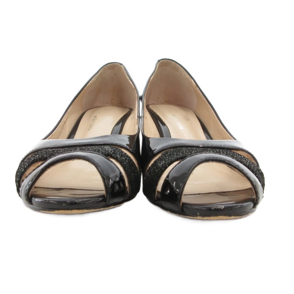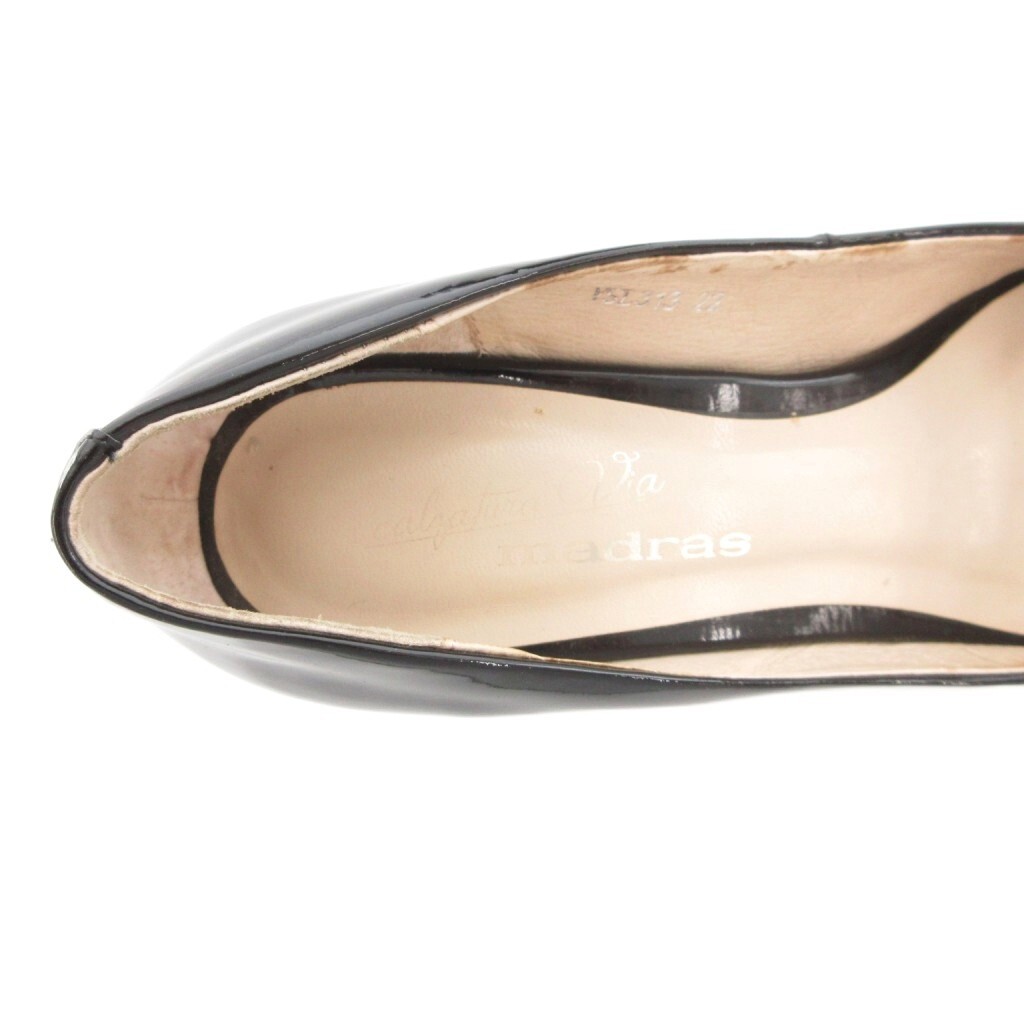 銀座かねまつ GINZA Kanematsu マドラス パンプス ヒール オープントゥ エナメル 22cm 黒 ブラック /GV レディース