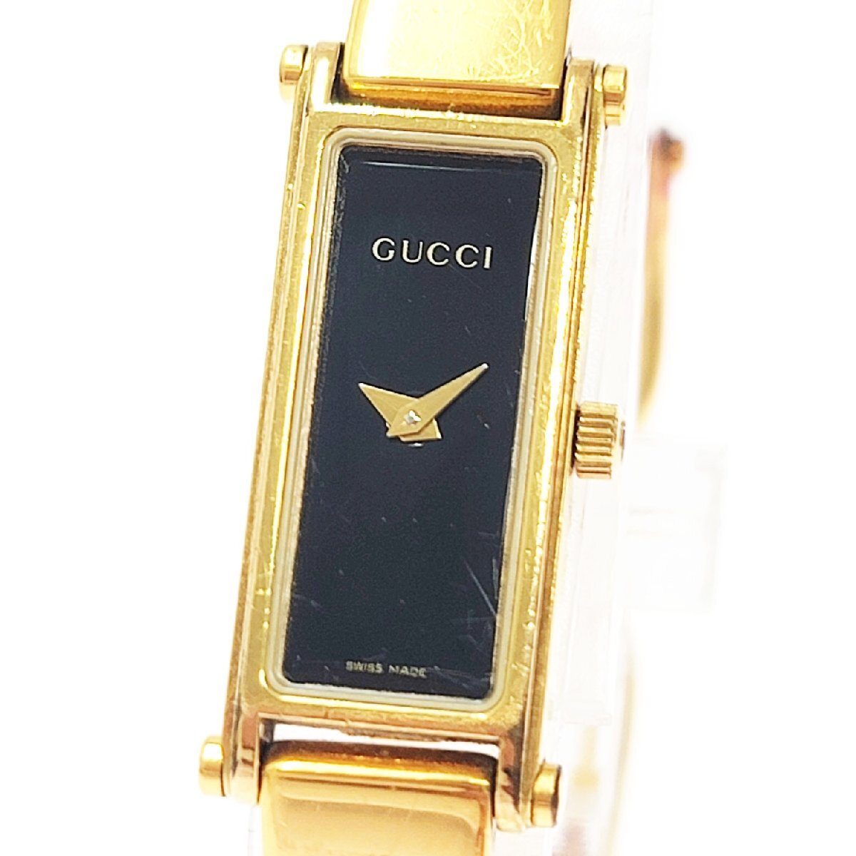 【1円スタート】GUCCI グッチ 1500 バングルウォッチ GP ブラック文字盤 クオーツ レディース腕時計 ジャンク 492811