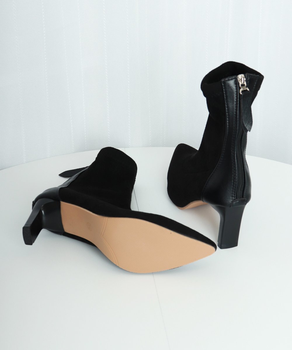 ポインテッドトゥ 美脚ブーツ ブーティ チャンキーヒール シンプル 無地 秋冬 履きやすい ショート丈 軽量靴 おしゃれ