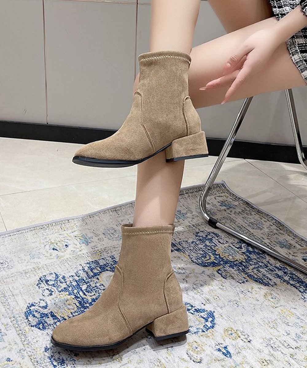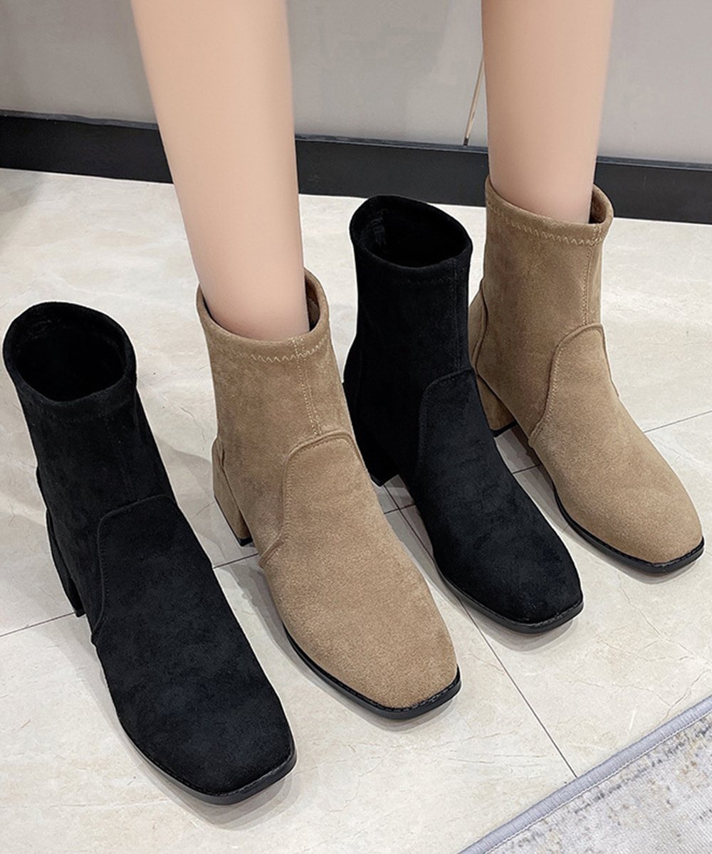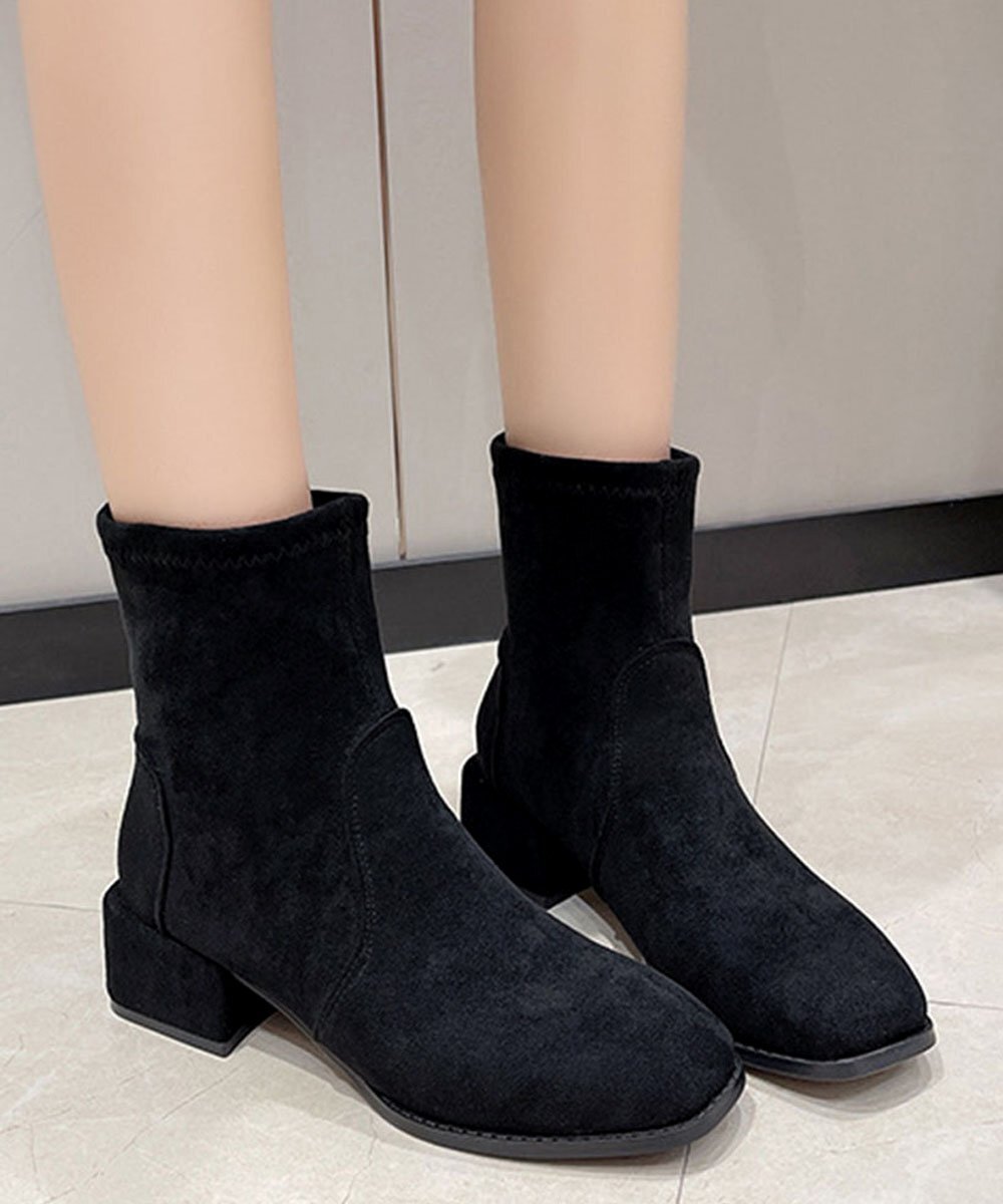 シンプルだからこそ履くだけで理想の美脚を手に入れるスエード調ショートブーティ