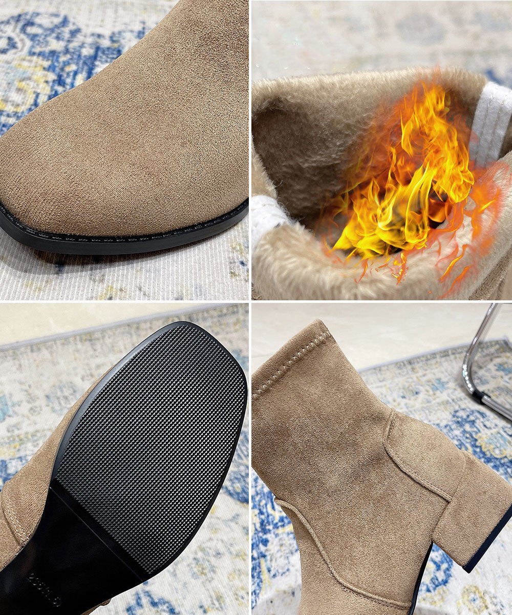 スエードブーツ 疲れないブーティー おしゃれ アンクルブーツ スクエアトゥ 内ボア秋冬靴 ローヒール 歩きやすい美脚脚長