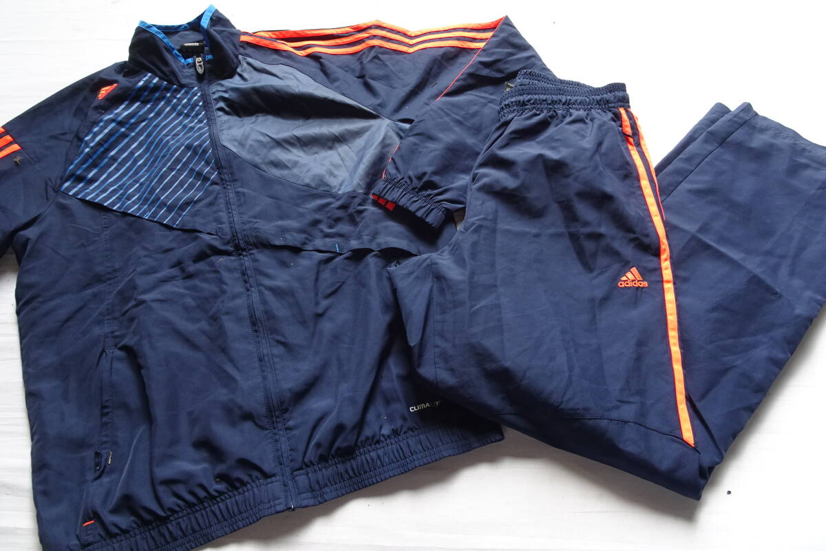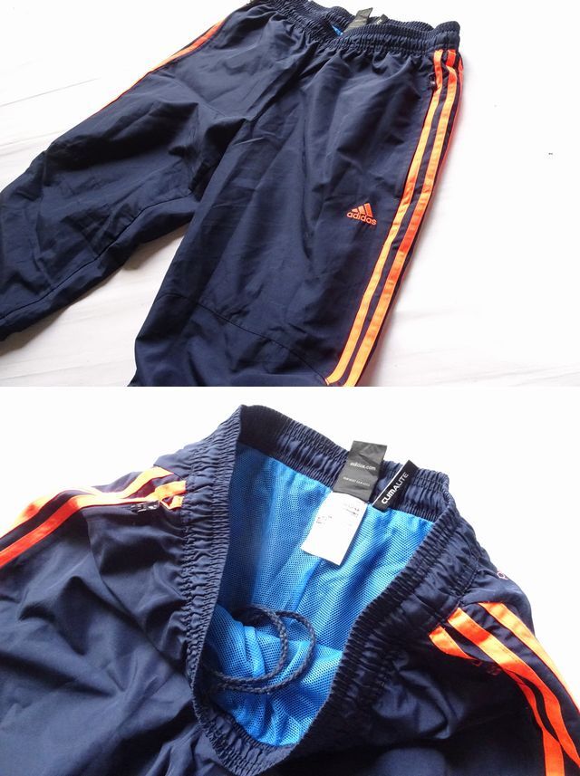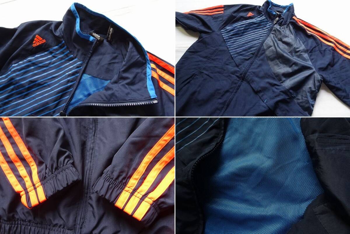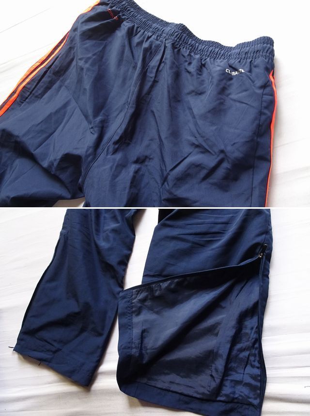 adidas/上下セット/ウォームアップ/スポーツ/ナイロン系ポリエステル/ジャンパー/長パンツ/オレンジライン/紺/ネイビー/Oサイズ(10/9R7)