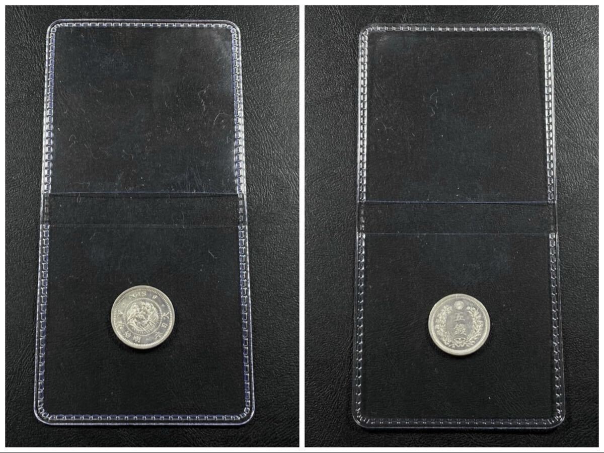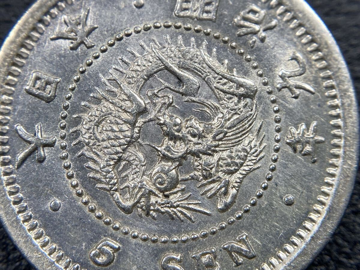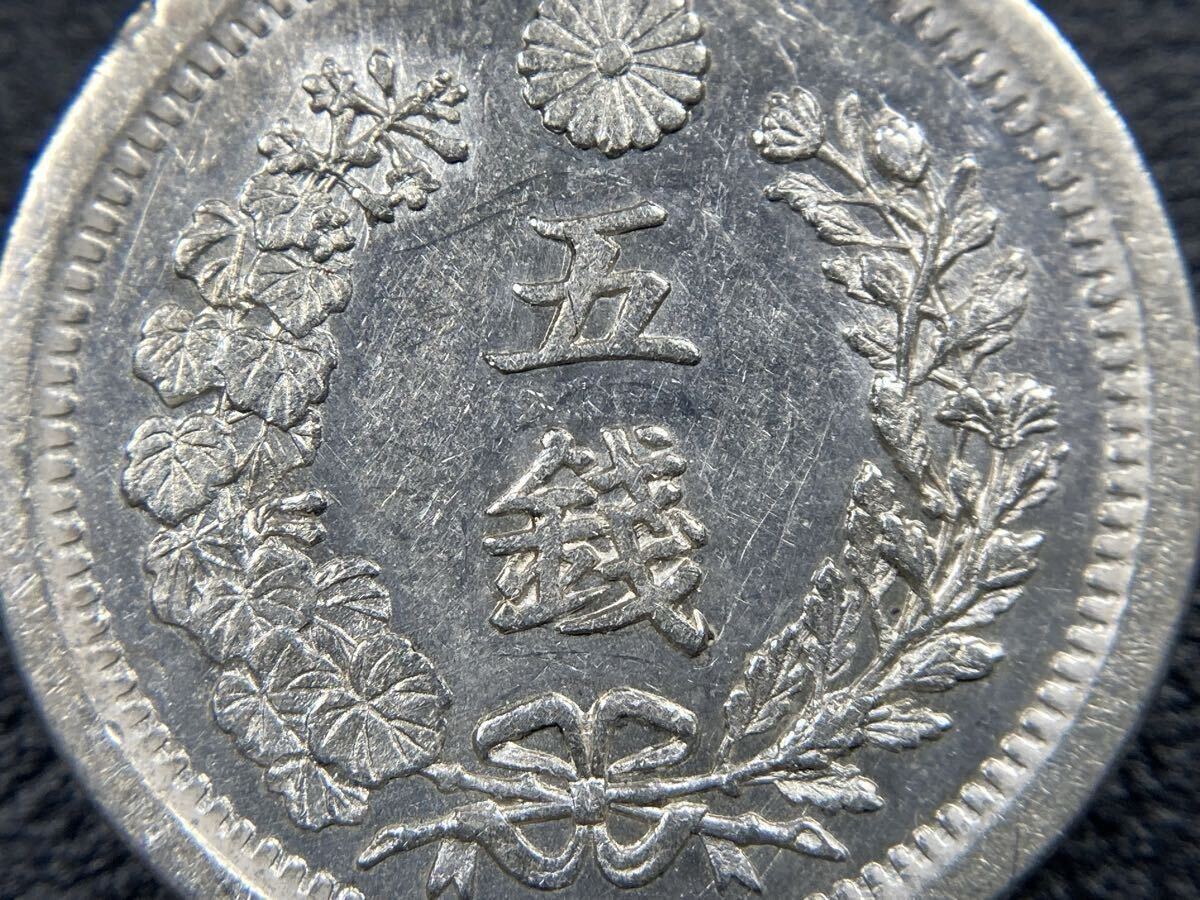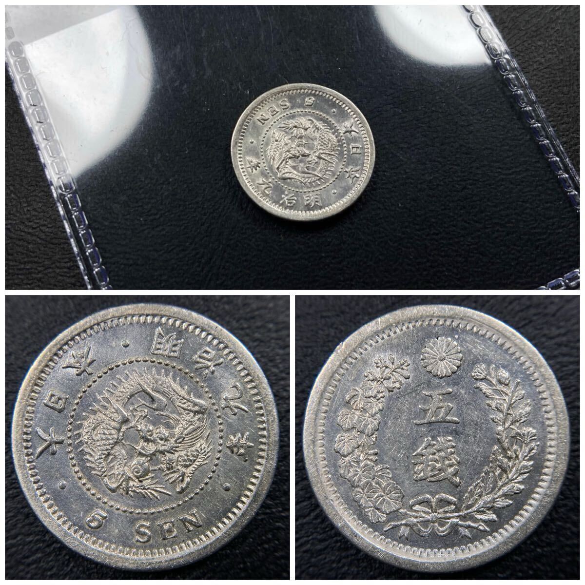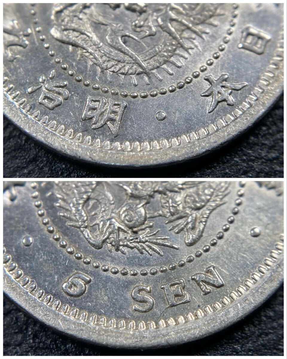 こちらは入手時未使用品の竜5銭銀貨の明治9年になります。
