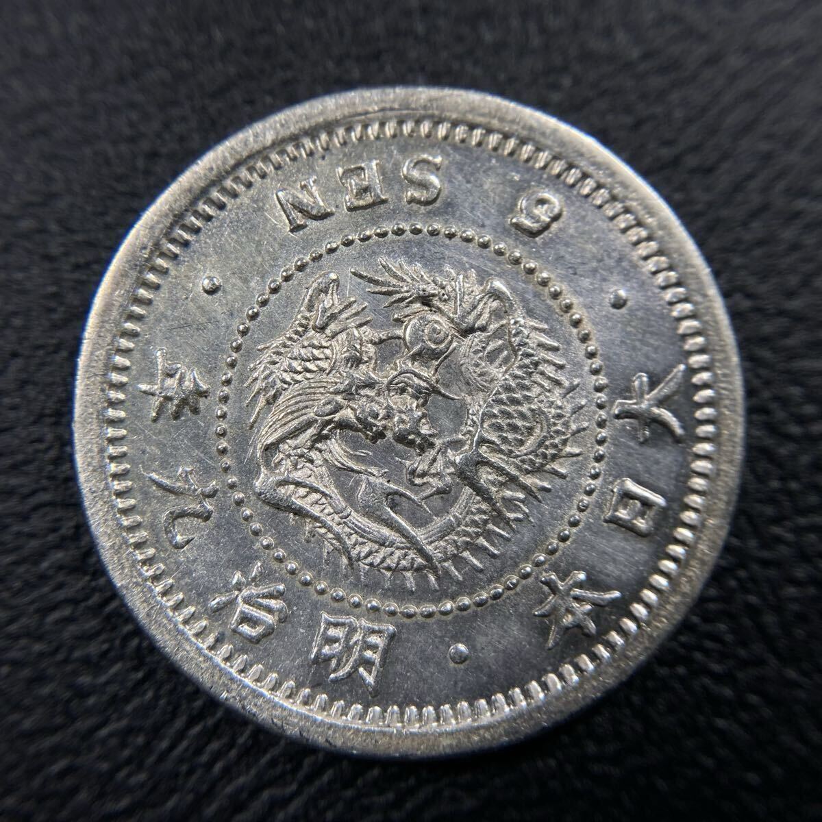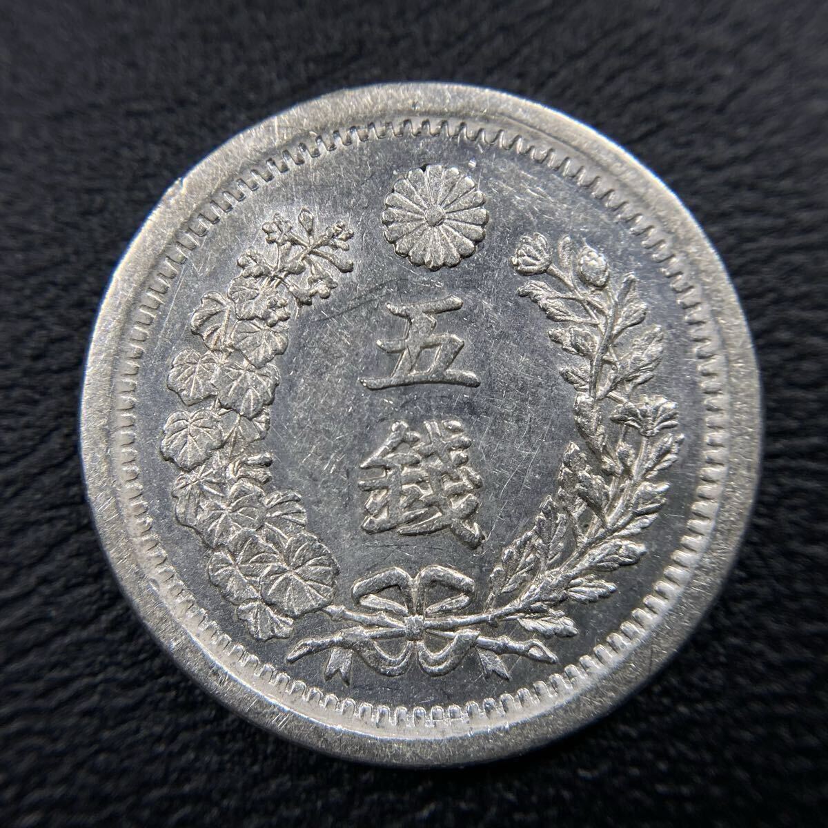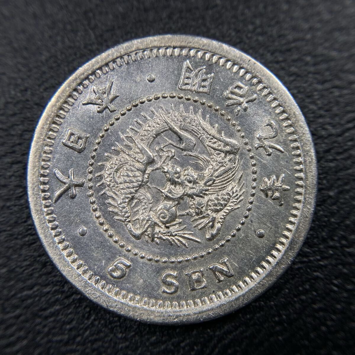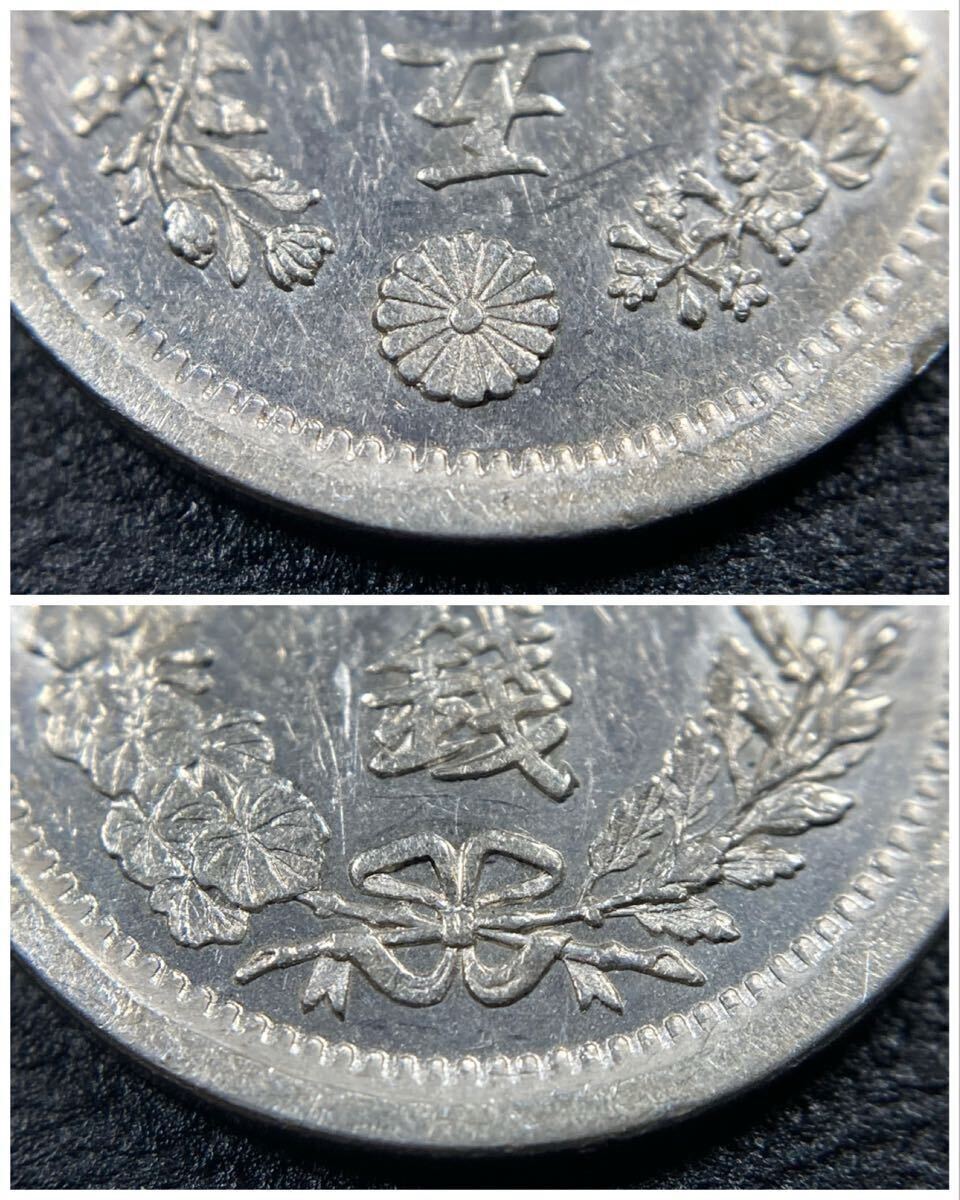 こちらは入手時未使用品の竜5銭銀貨の明治9年になります。