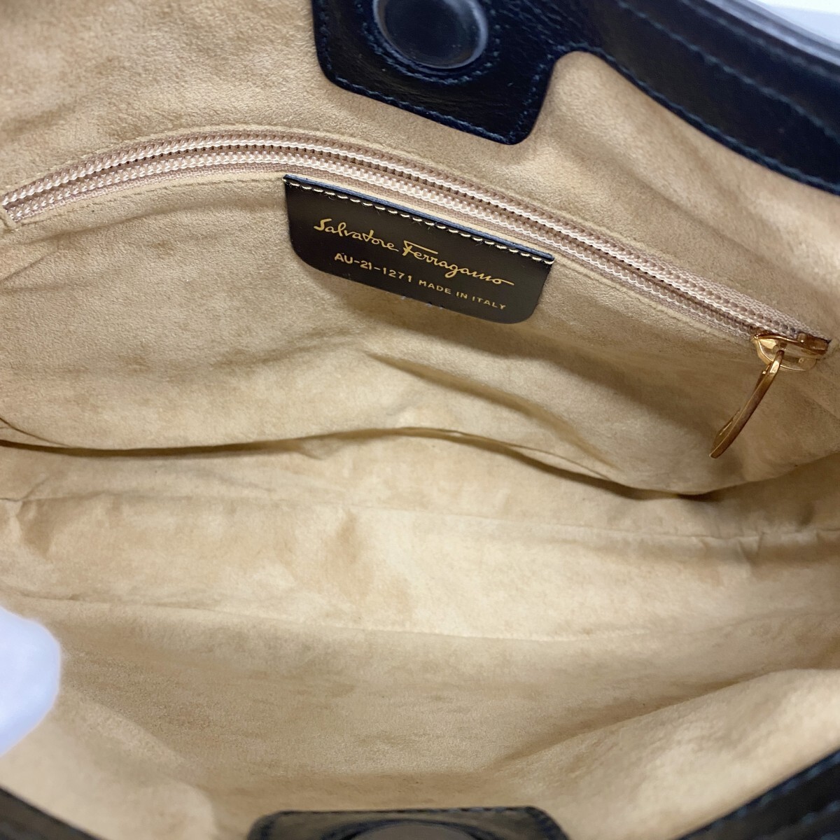 【5ma0751】サルヴァトーレフェラガモ ショルダーバッグ レザー ブラック シャンパンゴールド金具【中古】レディース