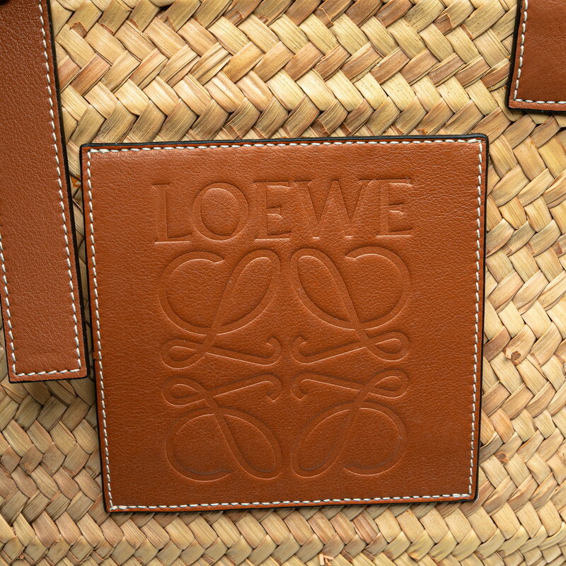 ロエベ アナグラム バスケットバッグ ミディアム ハンドバッグ かごバッグ ベージュ ブラウン ラフィア レザー レディース LOEWE 【中古】