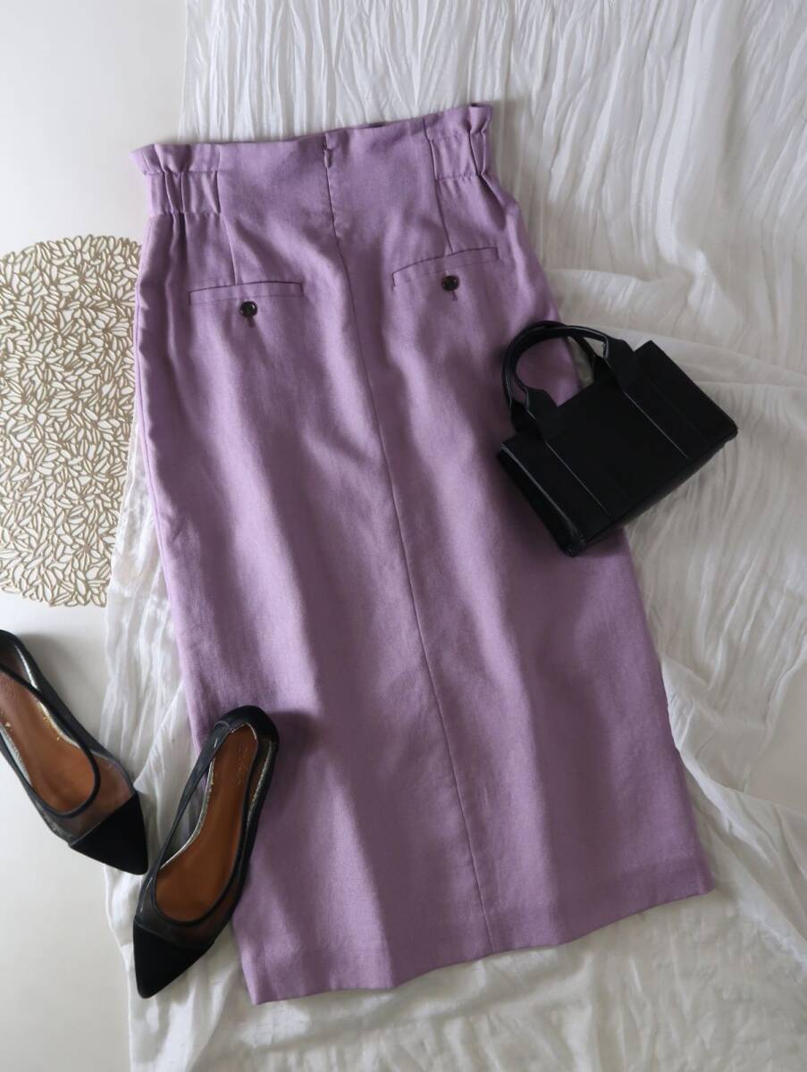 程よく体型をカバーしつつ、スタイルアップできるタックタイトデザイン。ウエストにタブデザインをプラスすることで、様々なトップスと合わせても決まる一着に仕上げています。 フロントのスリットデザインが抜け感のある着こなしを演出♪またウエストはサイドゴム仕様なので穿き心地も楽々です。ON/OFF問わず活躍するおすすめスカートです。