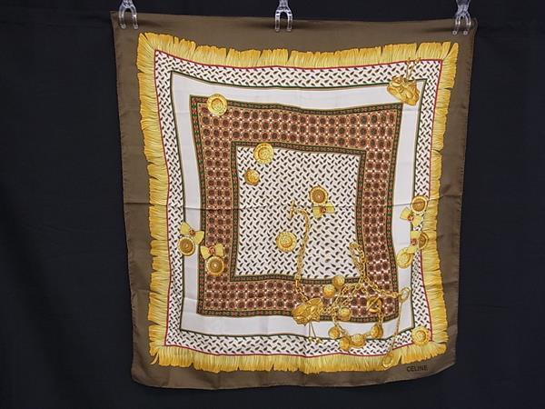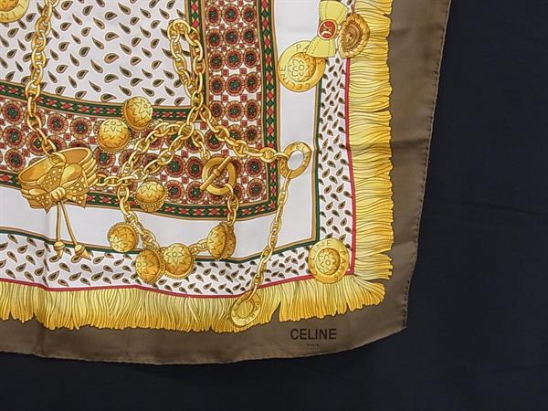 CELINE セリーヌ 総柄 大判 スカーフ ストール ショール レディース ブラウン系×マルチカラー DJ1725
