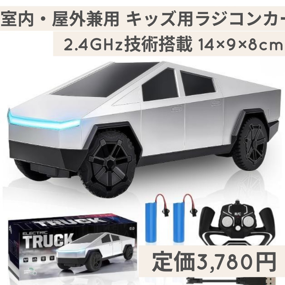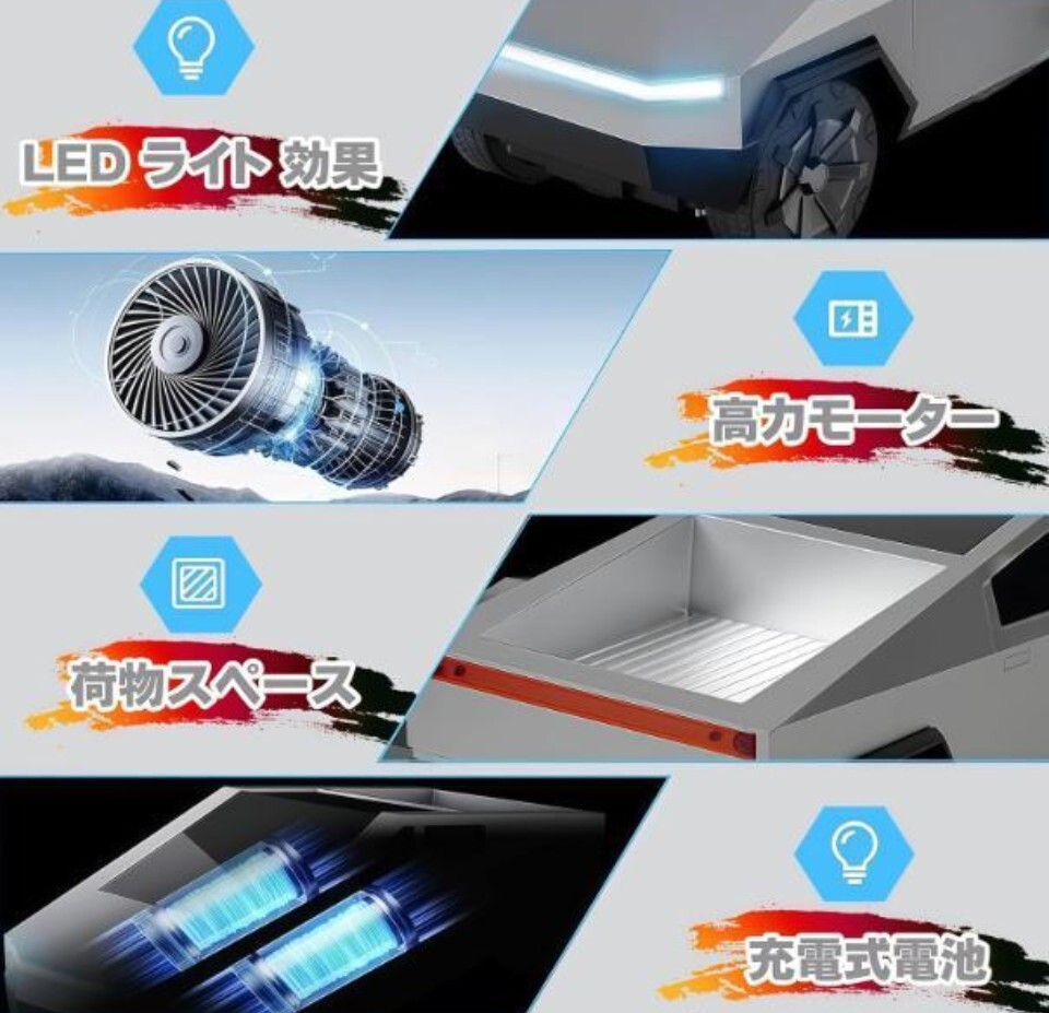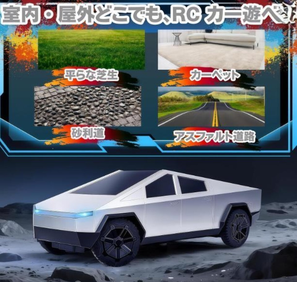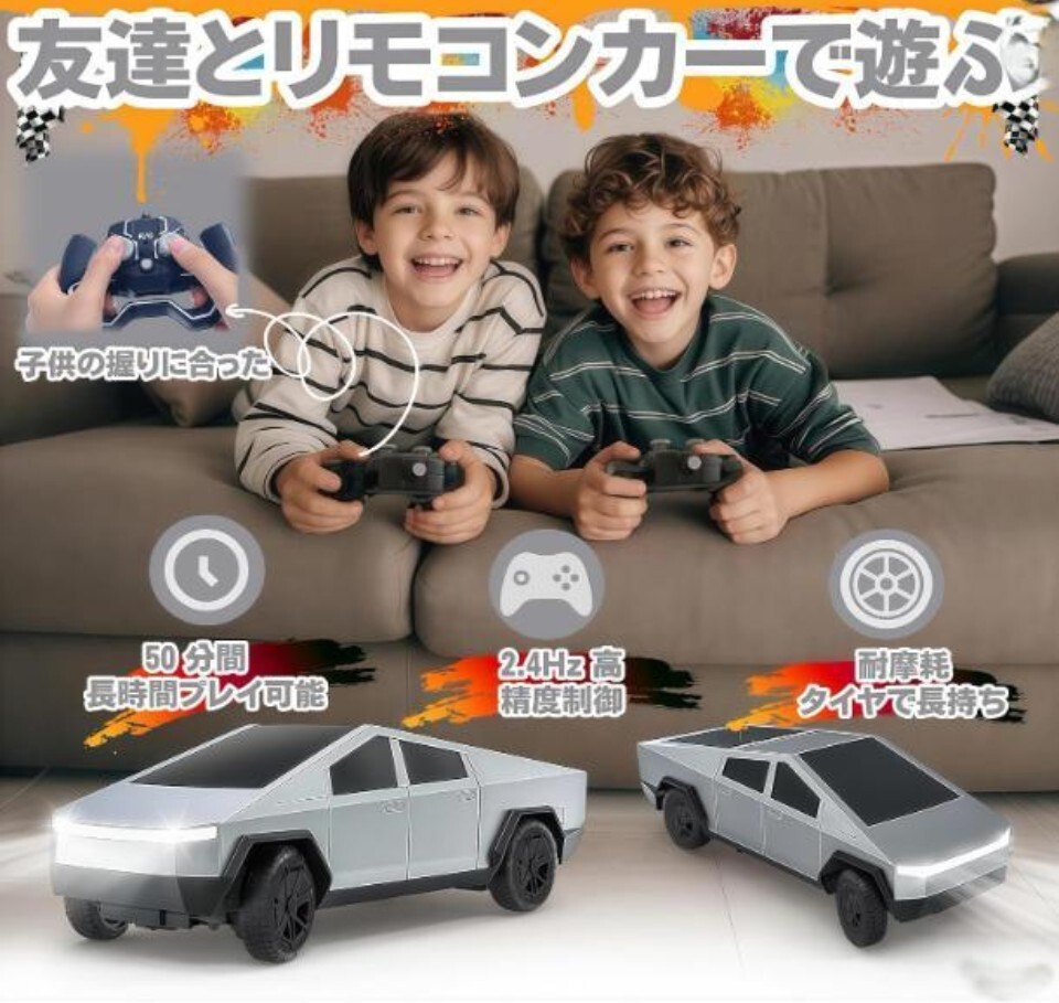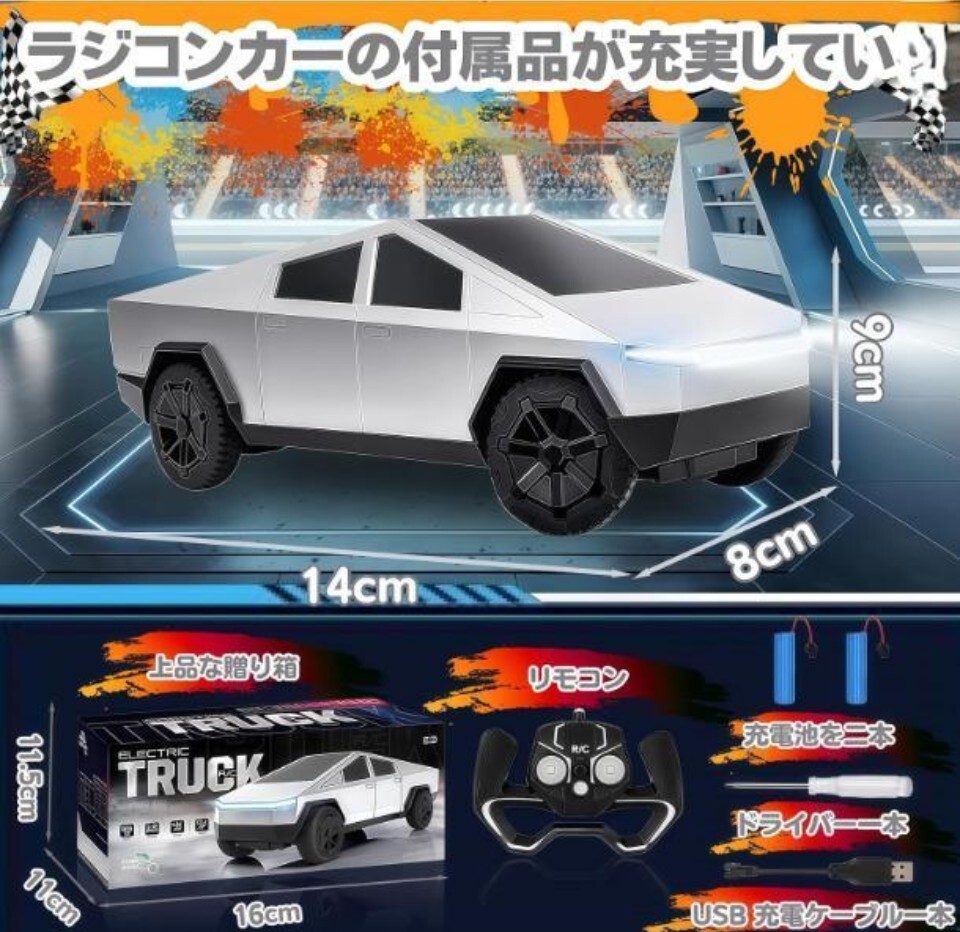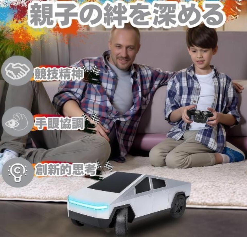 象徴的な自動車をモチーフのラジコンカーで、外観が最大の特徴です。他のラジコンカーと比べ、未来感あふれるデザインが際立ち、科技感も十分です。セットにラジコンカー本体用の充電池2本、リモコン1台、ドライバー1本、説明書1冊、USB 充電ケーブル1本が同梱されており、充電式ラジコンカーのメリットを最大限引き出します。