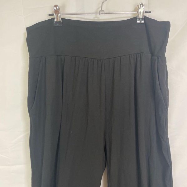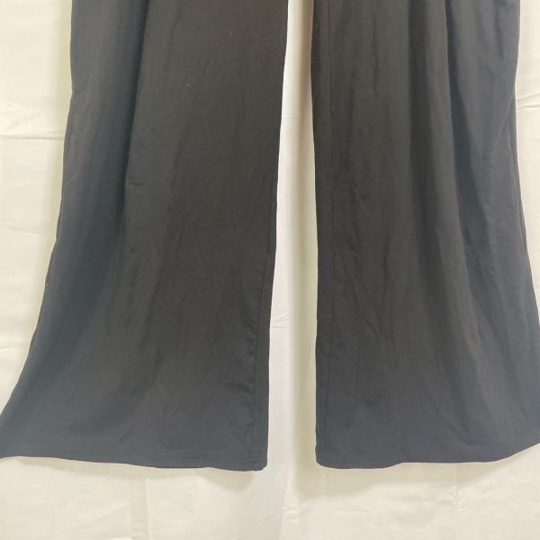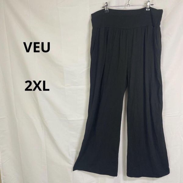 ストレッチ素材で動きやすい♪リラックス感あふれるブラックワイドパンツ - ブランド:VEU - サイズ表記:2XL - 素材:ポリエステル90%、スパンデックス10% - カラー:ブラック - シーズン:オールシーズン - 服の特徴:ワイドシルエット、ウエストゴム仕様、ストレッチ素材 03-93