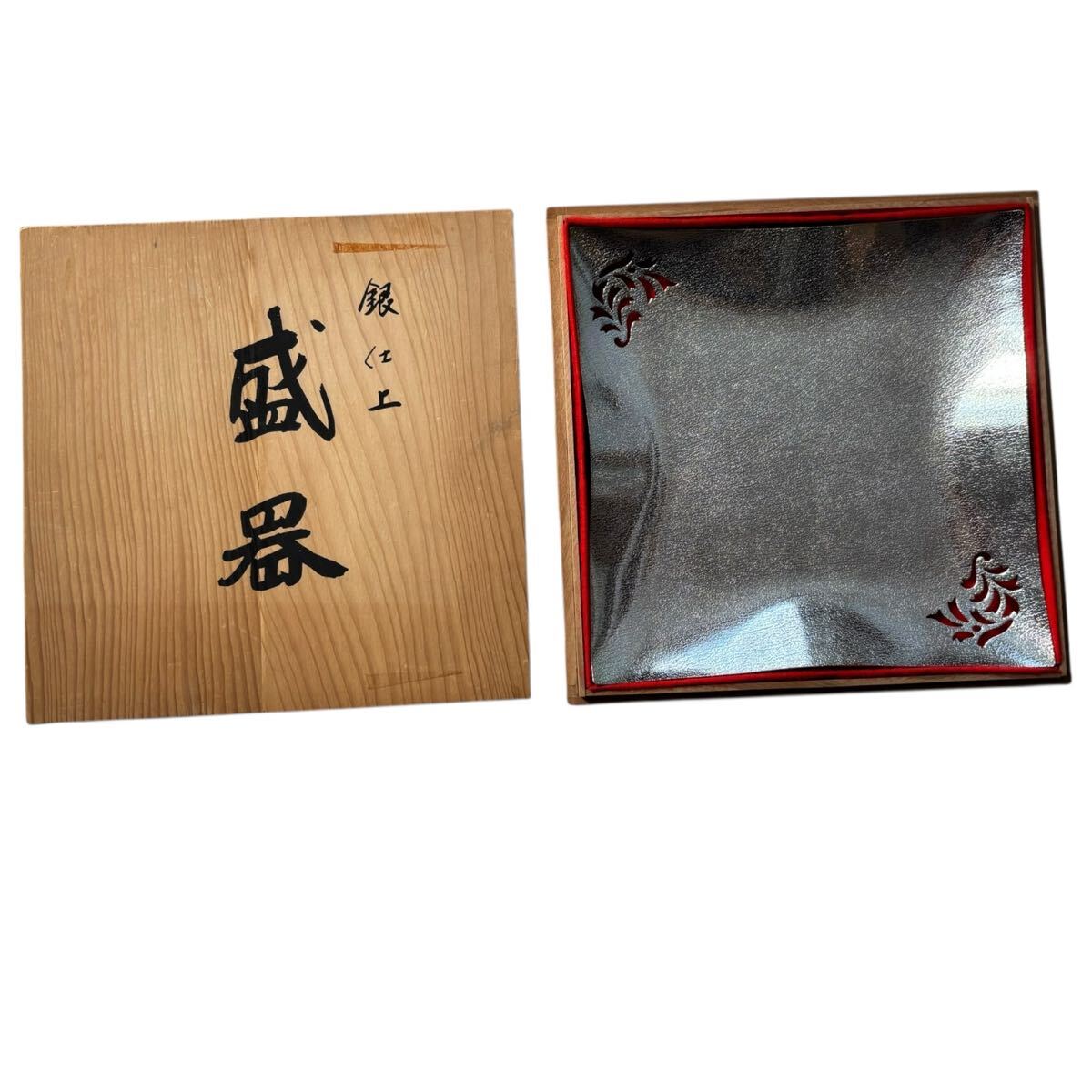 AZUMA 銀仕上 盛器 角皿 食器 銀食器 透かし柄