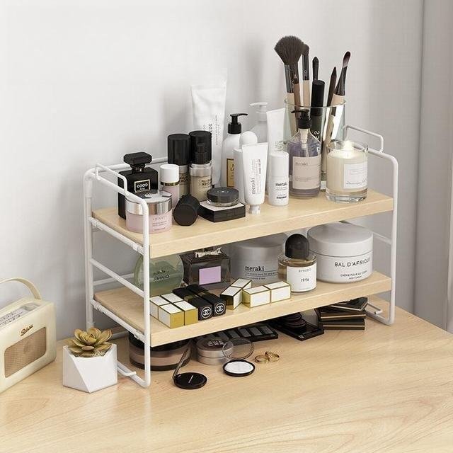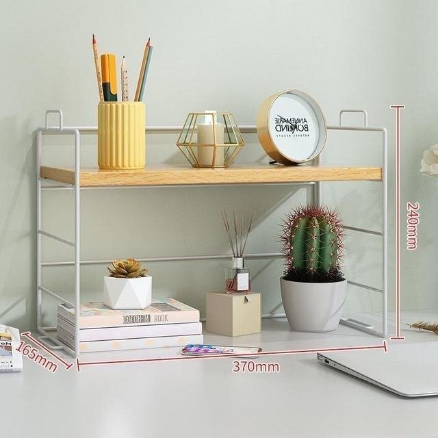 ラック棚 デスク上 ミニラック 卓上ラック 机上ラック 北欧 オープンラック アイアン 置棚 高さ調整 2段 ナチュラル板 白フレーム