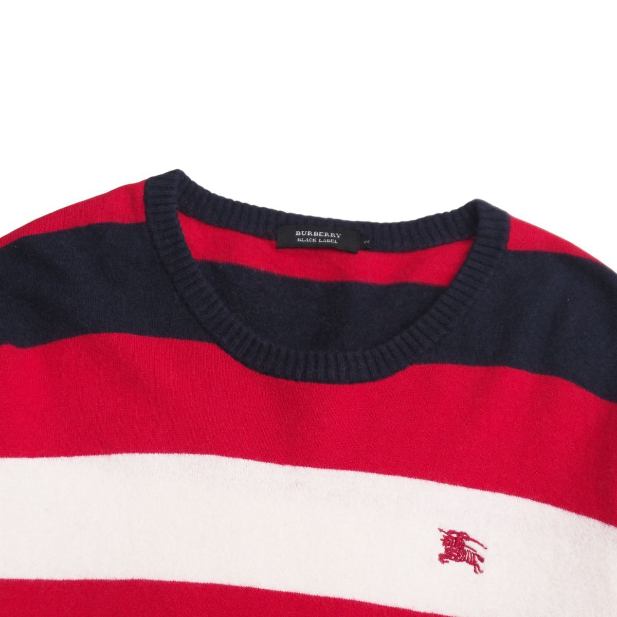 TI7612▽BURBERRY BLACK LABEL/バーバリーブラックレーベル メンズ2 ワンポイント刺繍 ボーダー クルーネック セーター | |||