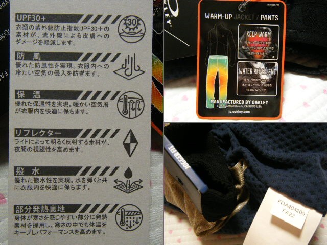 オークリー OAKLEY O-TECH WARM ウォームアップ用高機能ジョガーパンツ 黒色 W 91~97㌢ 撥水/防風/発熱/UV機能 定価 9,900円