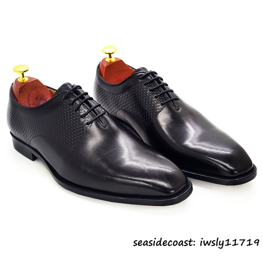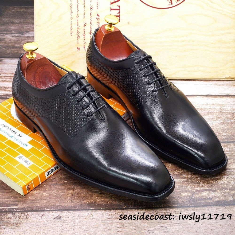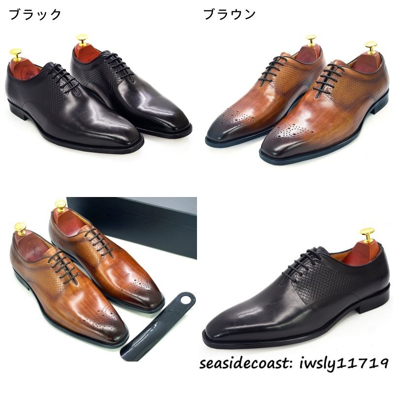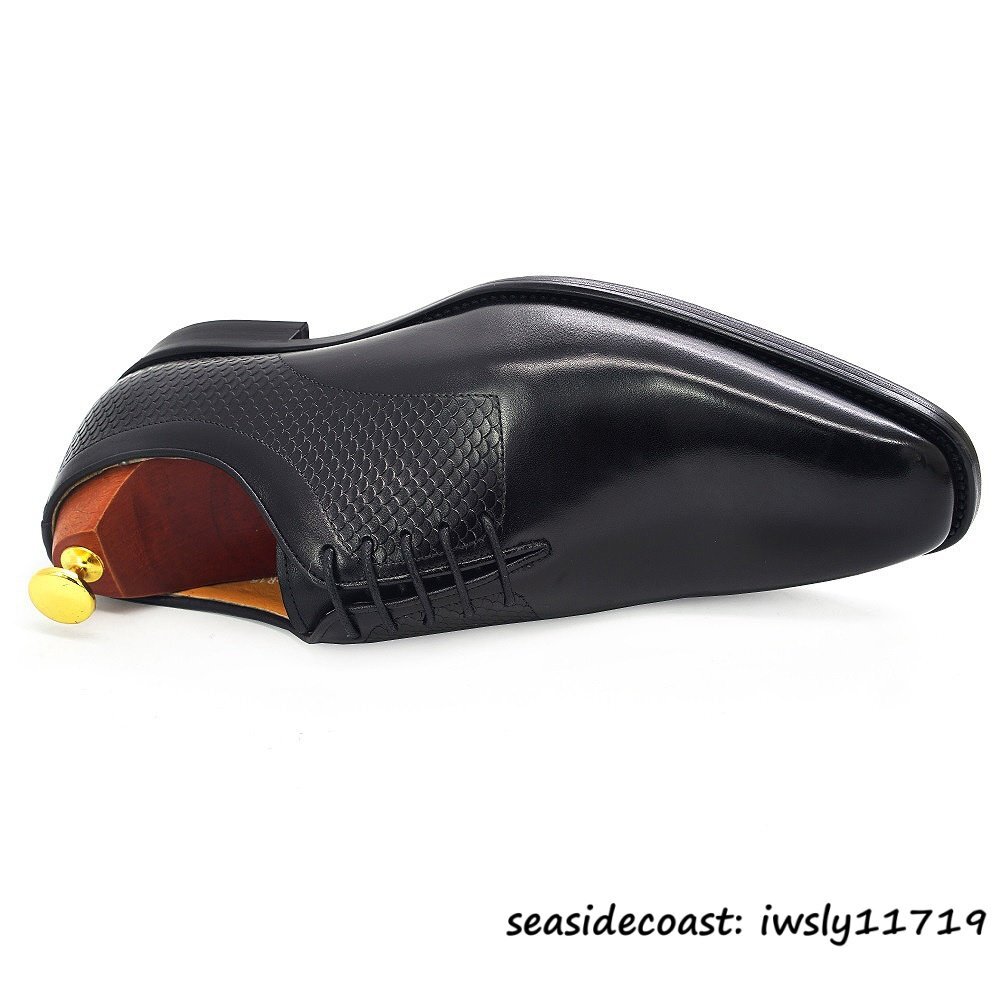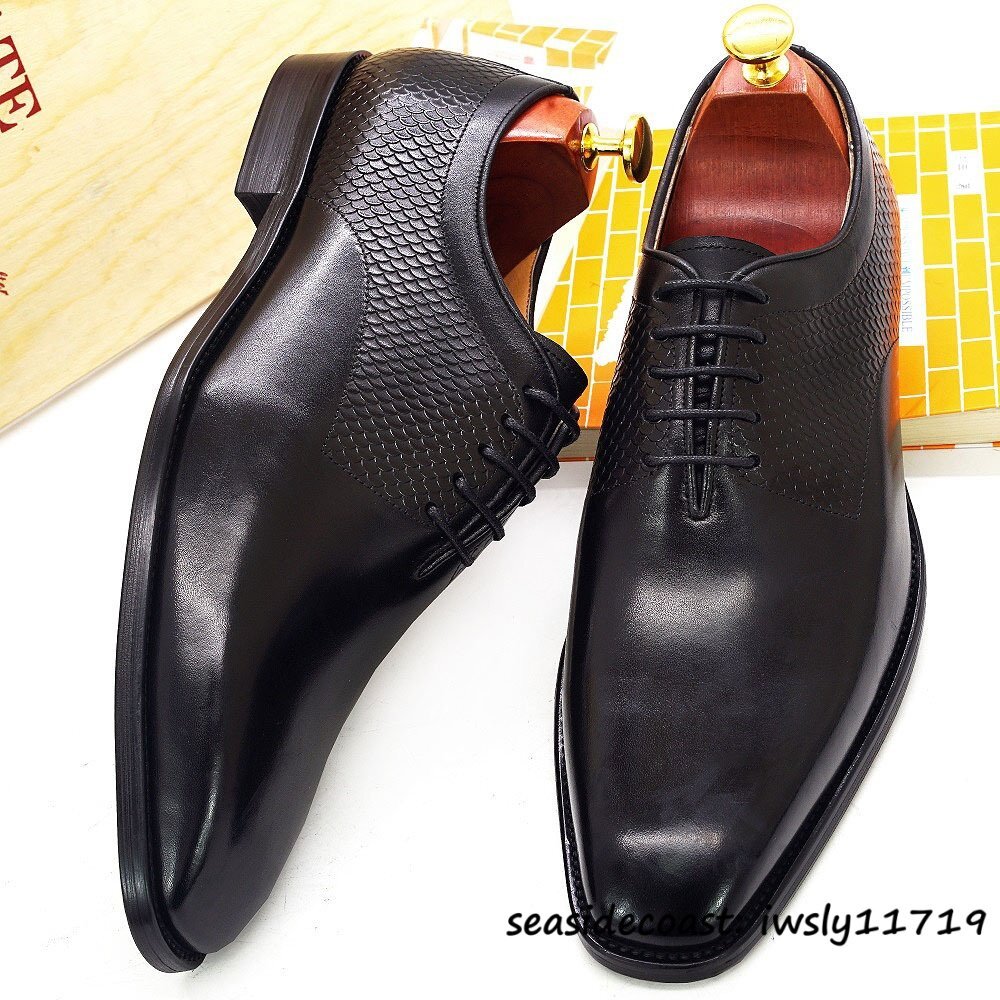 定価10万◆最高級 本革 ドレスシューズ ビジネスシューズ メンズ 職人手作り 牛革 レザーシューズ 革靴 紳士靴 フォーマル ブラック 24.5cm