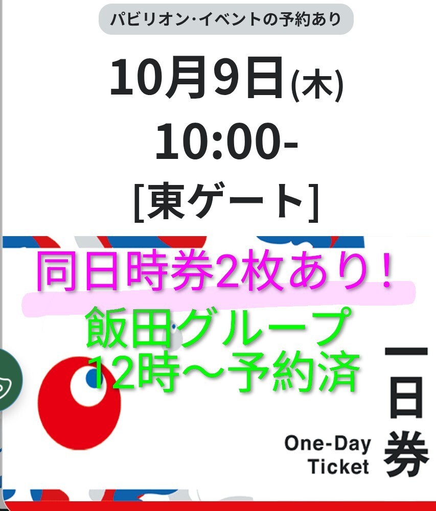EXPO2025 大阪関西万博 10月9日(木) 東ゲート10時入場チケット(1名分)