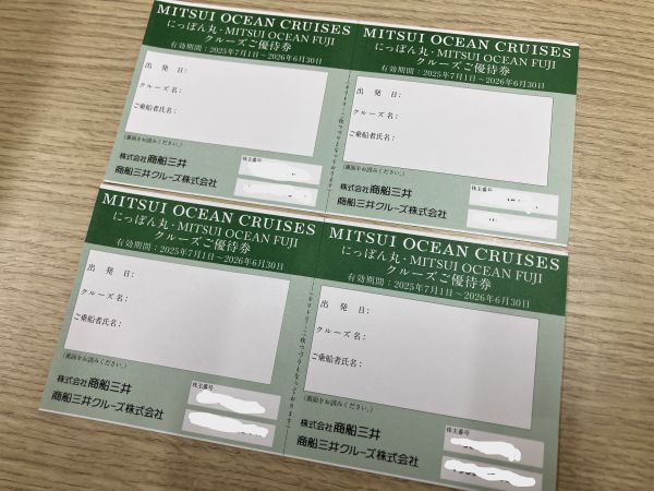 商船三井 三井オーシャンクルーズ にっぽん丸・MITSUI OCEAN FUJI クルーズご優待券 4枚セット