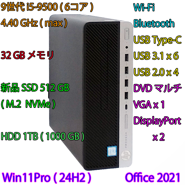 快速9世代 i5(6コア)4.40GHz(max)+32GBメモリ+新品SSD(M.2):512GB+HDD:1TB/