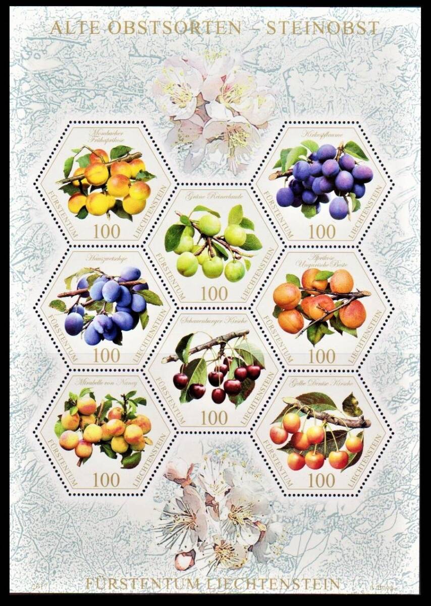 dω522y5-2L リヒテンシュタイン2017年 果物・8種シート 14.5×21㎝