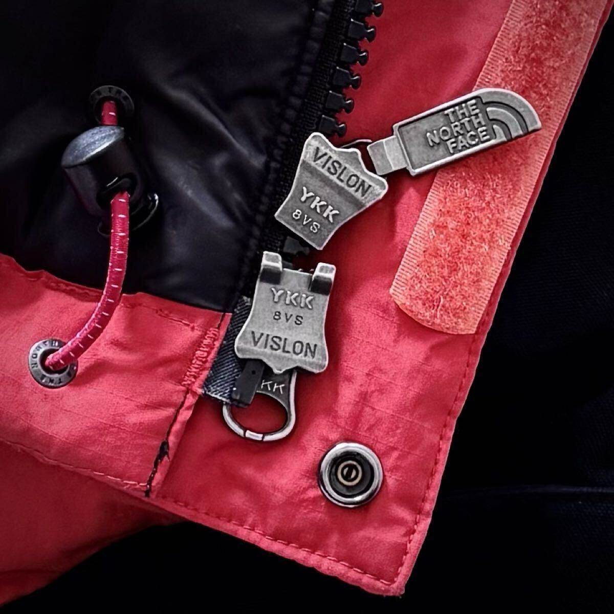 ノースフェイス独自の防水透湿素材、HYVENTハイベントで雨や雪からの水分の侵入を防ぎつつ、内側の湿気を外に逃がすことにより快適な状態が保たれます。ファスナーは上下開閉可能な大型ダブル仕様で、YKKの中でも高品位なVISLONを採用。
