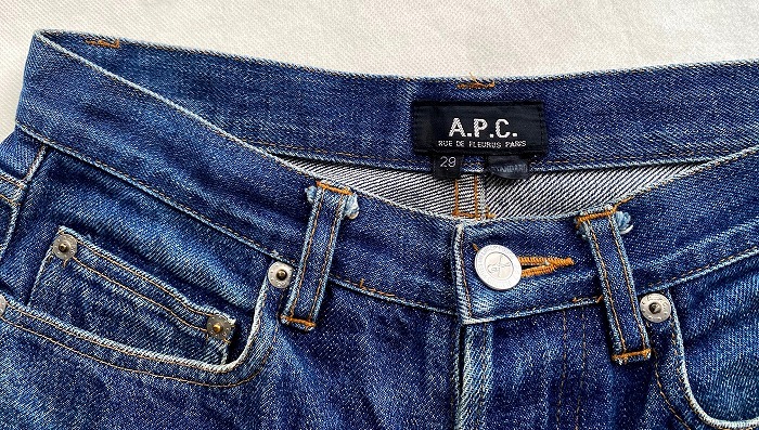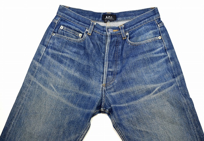 「 A.P.C. (アーペーセー) 」の 日本製 STANDARD JEANS スタンダード ジーンズ DENIM PANTS 29 INDIGO デニムパンツAPC 赤耳 セルビッチ イーストバイウエスト期 定番 ボトム トラウザー インディゴ 加工 Vintage ヴィンテージ風 古着 おしゃれ ストリート 美しい色落ち です。