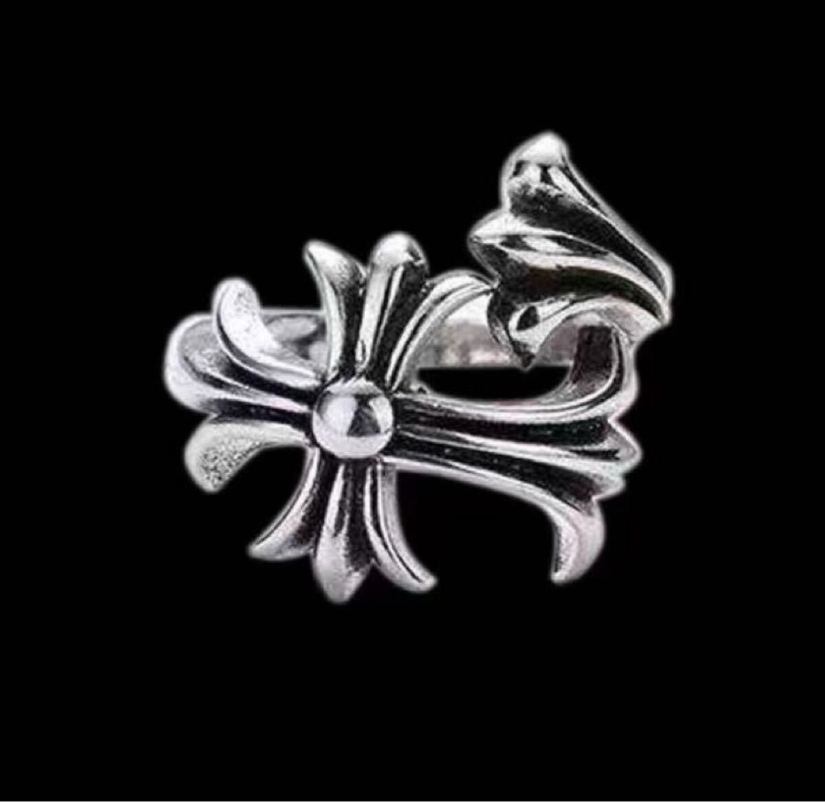 十字架 クロス リング シルバー 指輪 フリーサイズ アクセ フローラル