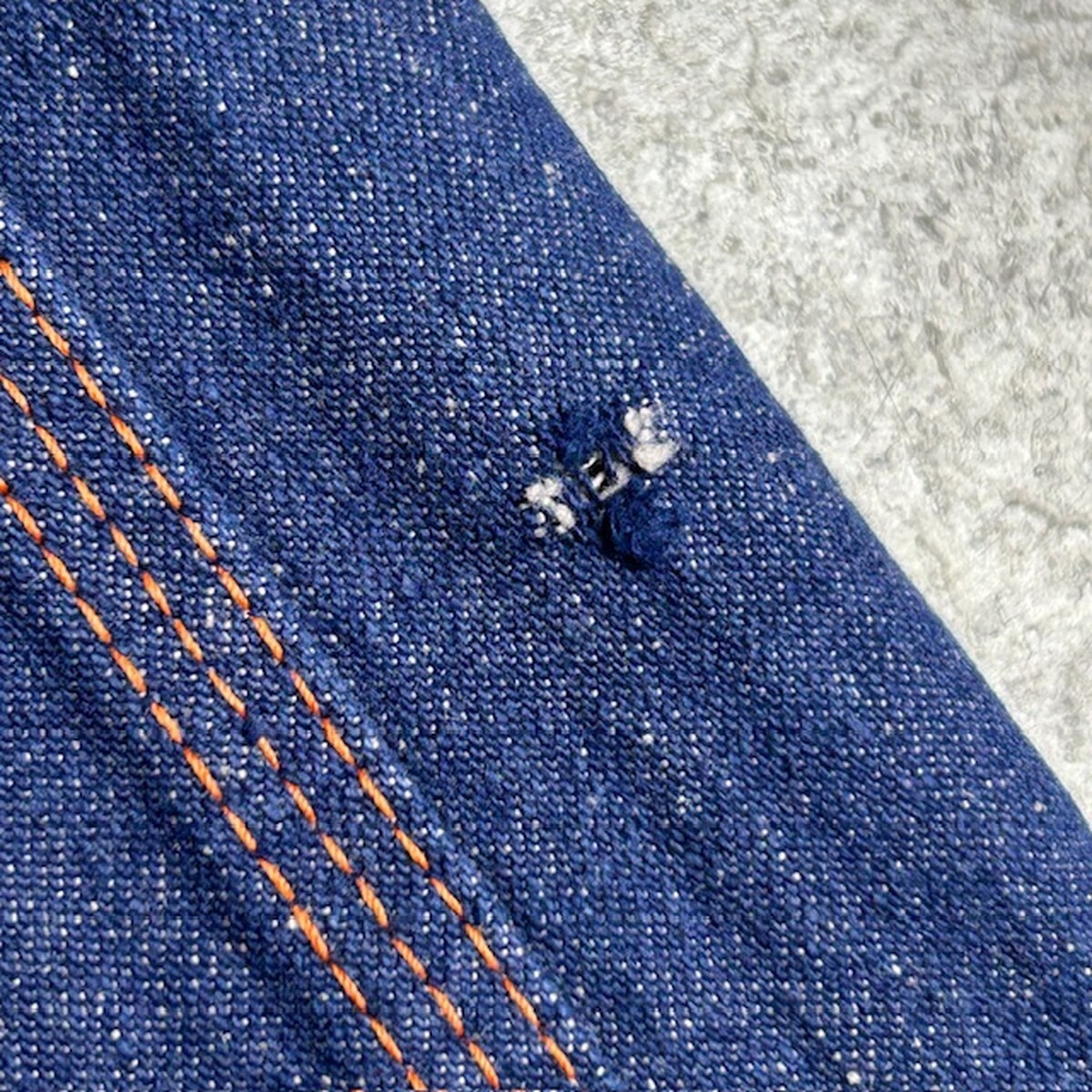 | STAFF COMMENT | 1950-1960's unknown デニムペインターパンツです。SCOVILL zip、W34、ライトオンス、3本針。股のジップ内側にタグがありますが薄れてプリントが消えており解読不可です。左太ももと裾、にピンホールあり。右の太ももにも糸のホツレが見られます。簡易な裾上げが施されております。使用感はありますが目立ったダメージや汚れはなくグッドコンディションとなっております。デニムペイインターとても人気なアイテムなのでい探しだった方、サイズが合う方は是非。 |