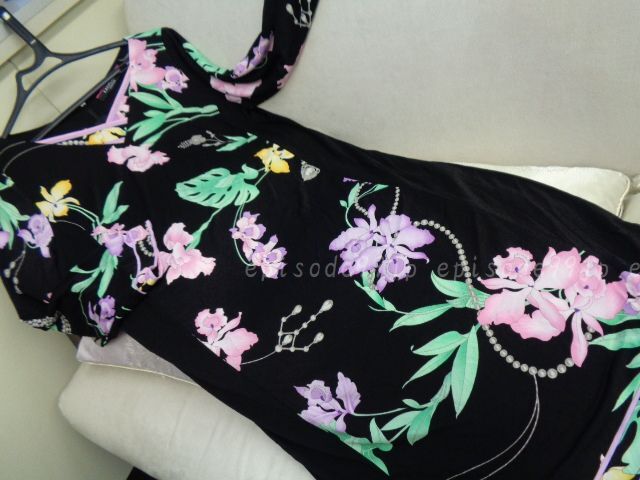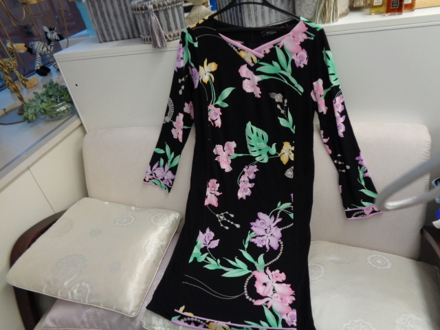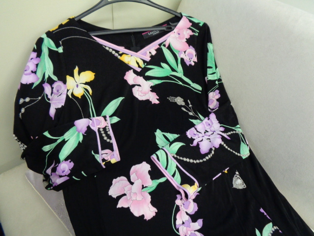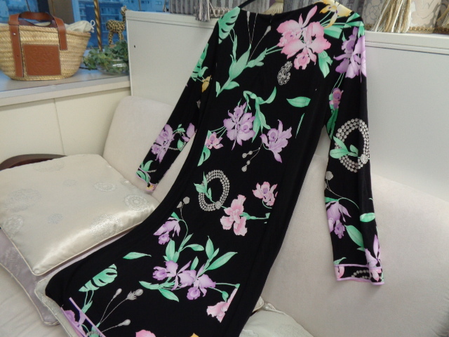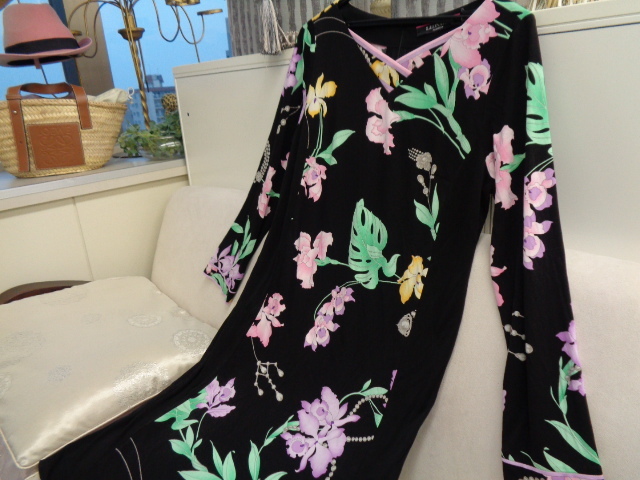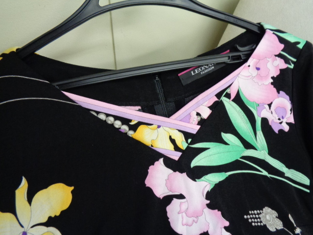 レオナール 美品 * Vネック膝丈ワンピース、
