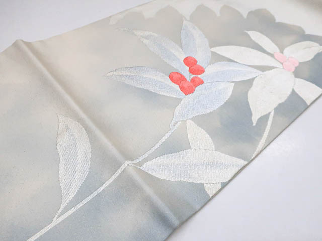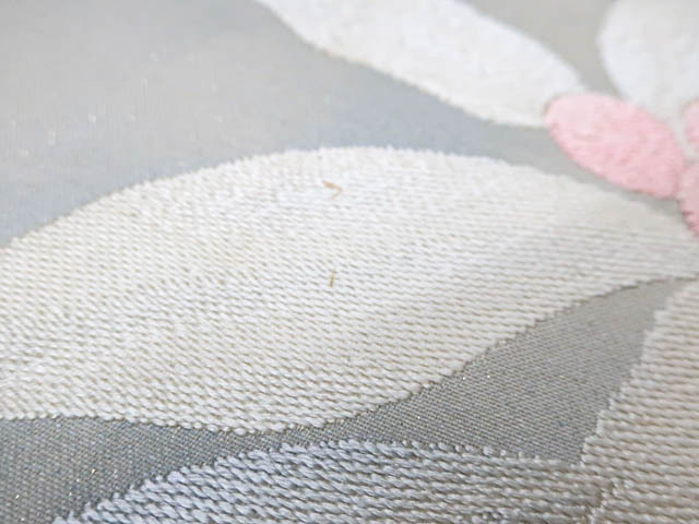 リサイクル商品のため、お太鼓裏に点シミ、お太鼓にスレ、着用ジワがございますが、ご着用可能なお品です。 地色は、生成色です。 1枚目の画像が近いお色かと思われます。 素材は正絹です。 |