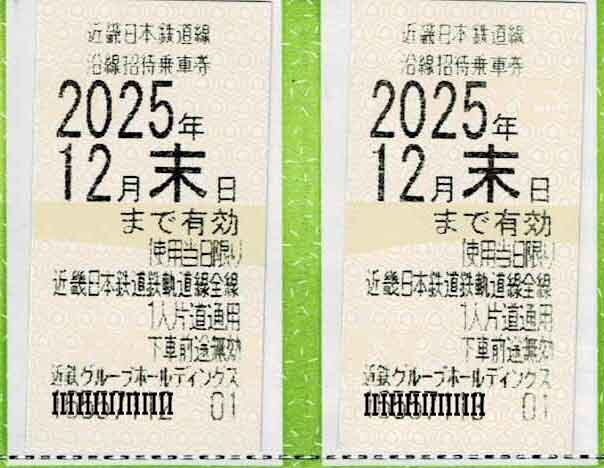 近畿日本鉄道(近鉄)の株主優待乗車券(2回乗車分)