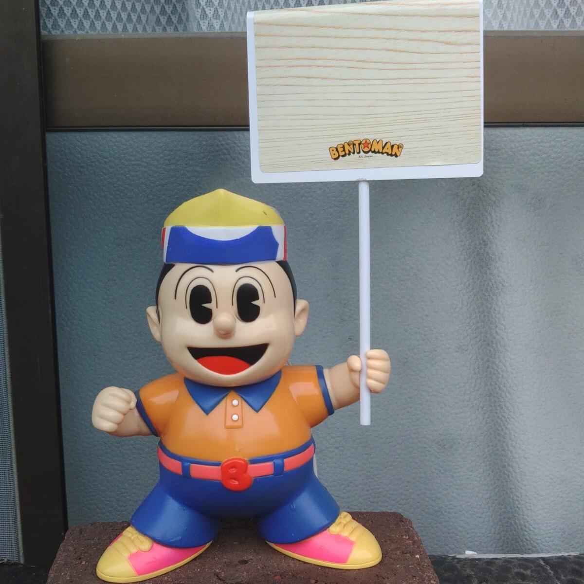 本体の高さは19センチ位あります。 発送時はプラカードを外します。 郵パックでの発送。