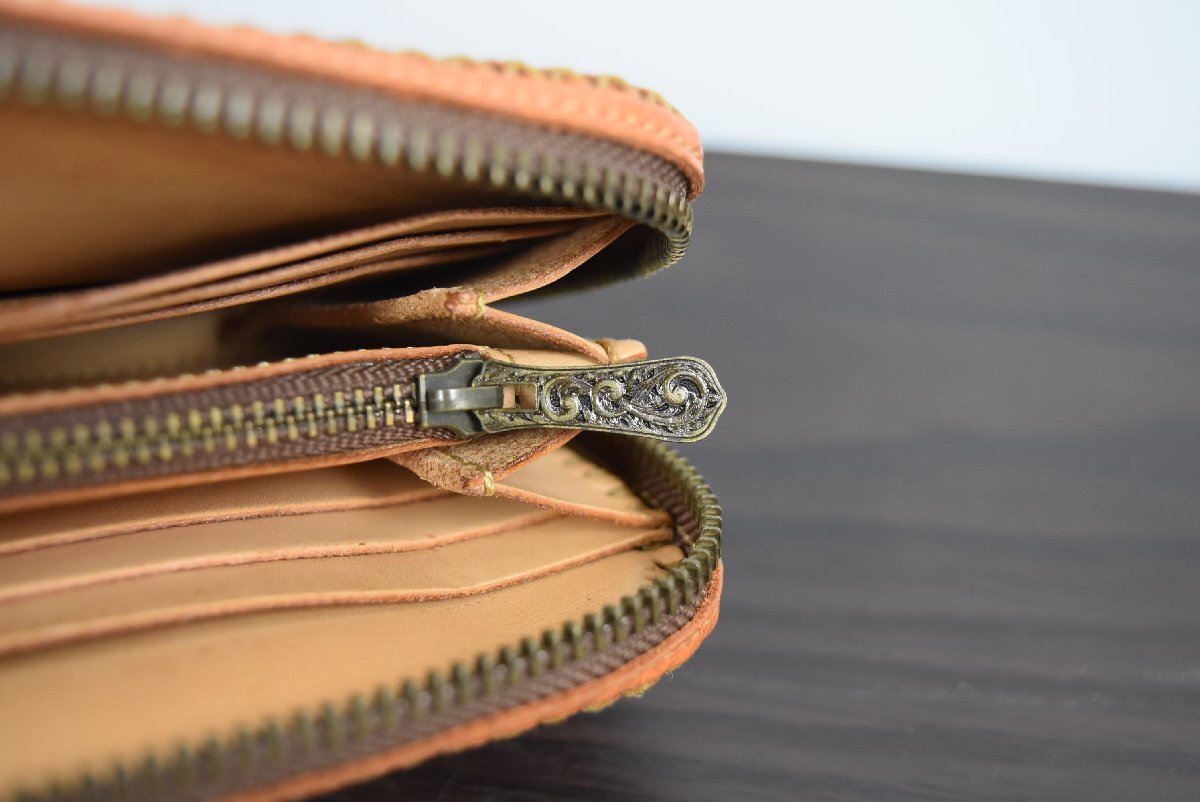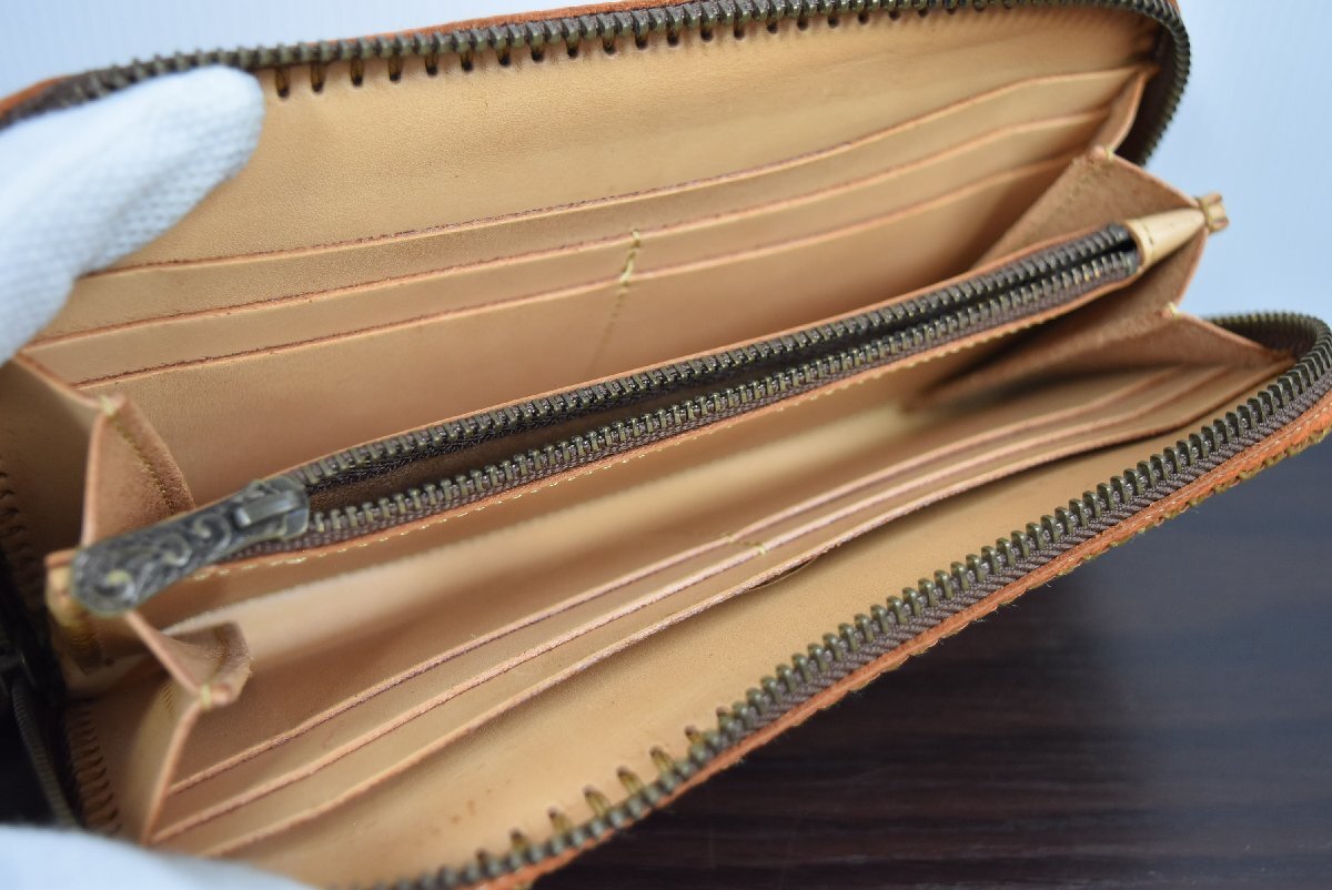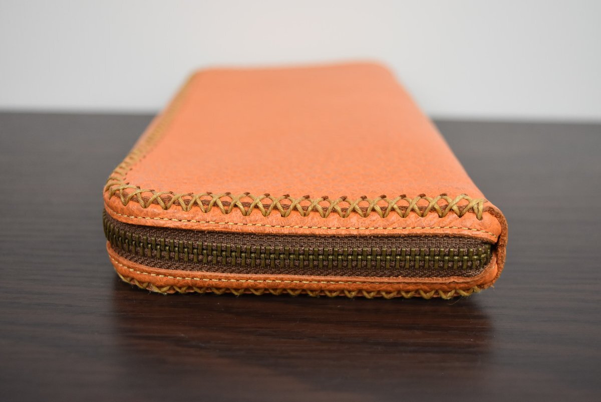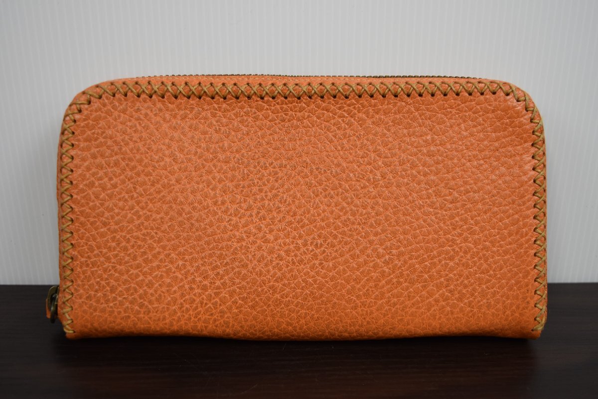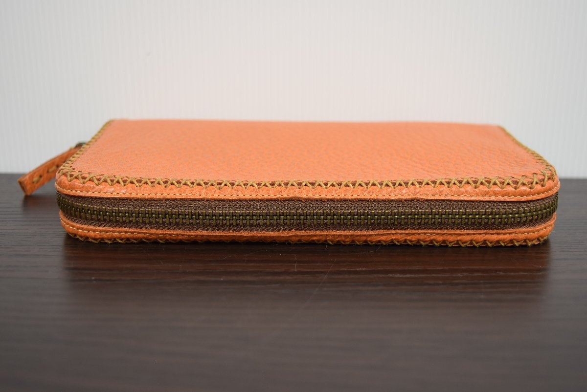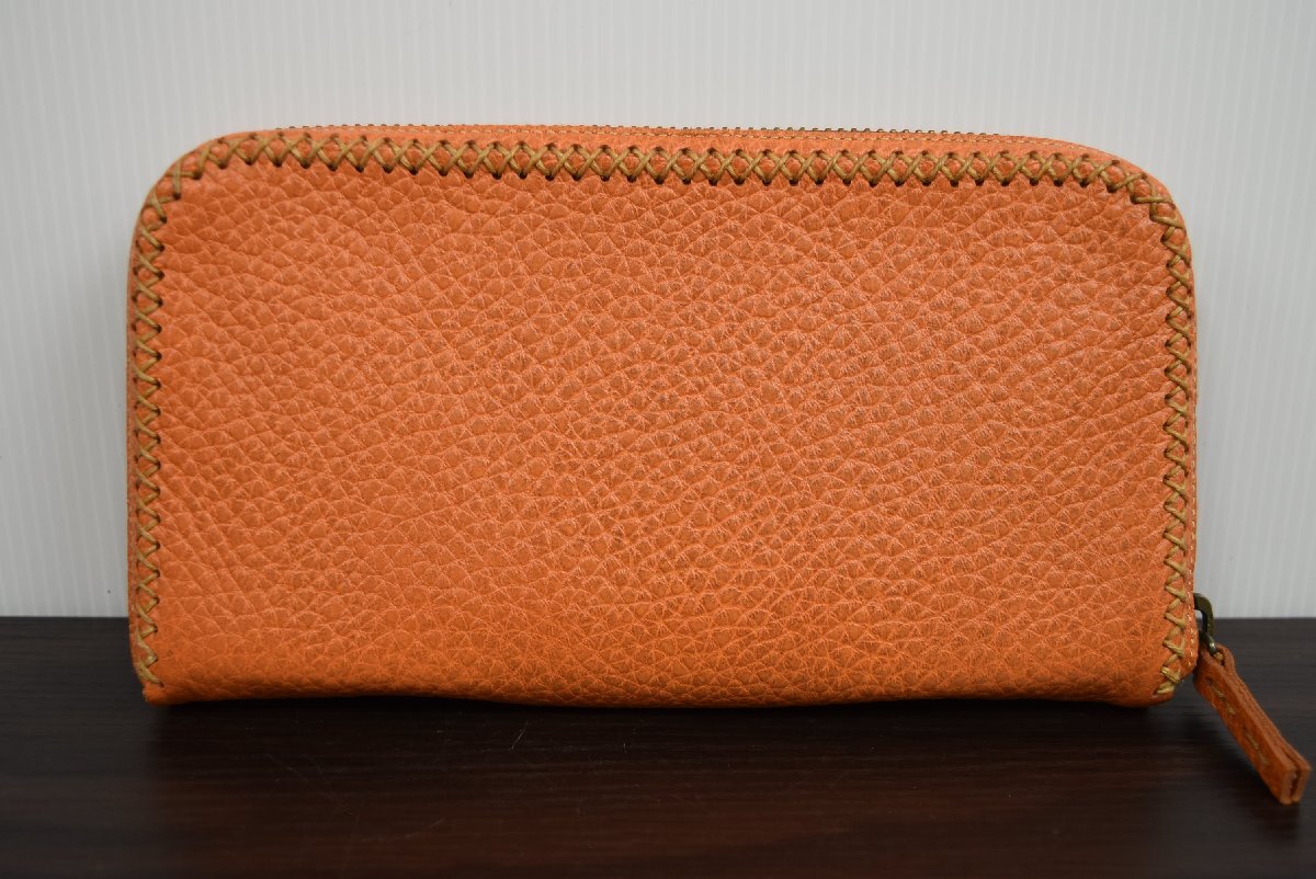B-585 中古 未使用 ジャンク品 FUNNY ファニー レザー 長財布 ウォレット シュリンクレザー オレンジ 本革 アメカジ ファッション 箱付き