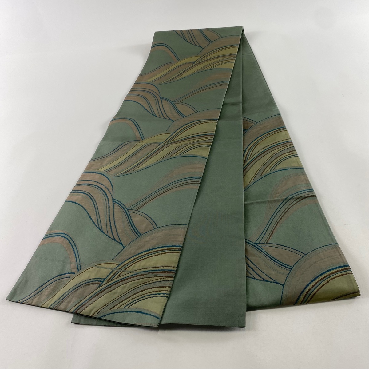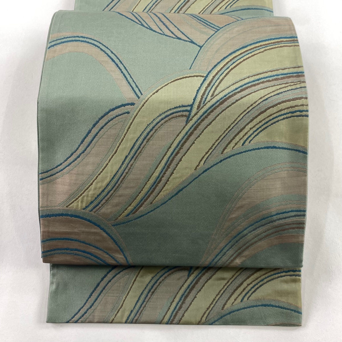 | 袋帯 秀品 紬地 波 灰緑 六通 正絹 【中古】 |