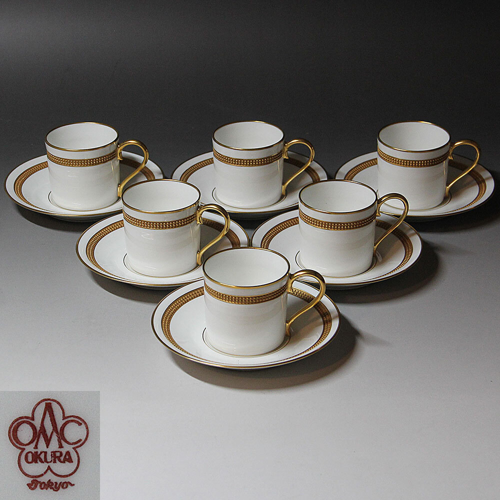 OKURA Tokyo 大倉陶園 エスプレッソ カップ&ソーサー 6客 金蝕 金彩 / オールドオオクラ デミタスカップ