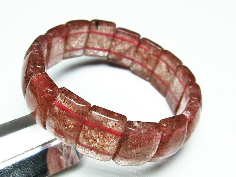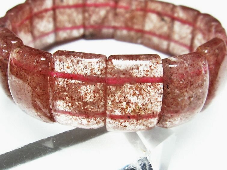 | ■商品名: ストロベリークォーツバングル ■商品ID: T188-2376 ■商品重量:約 53.5g ■商品サイズ: 高約:18mm 横約:13mm 厚約:7mm 内径円周約:165mm(±5mm) 【ストロベリークォーツ(苺水晶)】 ストロベリークォーツはゲーサイトかレピドクロサイトの粒子を内包した水晶の通称で、名前どおりの苺を思わせるような色合いが魅力の天然石です。 正式な鉱物名ではないためストロベリークォーツに明確な定義はないのですが、ゲーサイトかレピドクロサイトの粒子によって赤色に見える水晶がストロベリークォーツとされています。 一般的にゲーサイトを内包したストロベリークォーツのほうが価値が高いとされ、そのなかでも内包物の密度と水晶の透明度のバランスがとれており色合いが美しいものがより良質なストロベリークォーツとされています。 ストロベリークォーツは更年期症状の緩和や若々しさをもたらす効果があるといわれています。 また持ち主の「愛され力」を高めるともいわれているので、良好な恋愛関係を築きたい方はもちろん、芸能関係などの自分を売り込んでいく職業に就く方にもおすすめです。 ⇒ ストロベリークォーツをもっと詳しく ◆ワンポイント情報 現在は高品質なストロベリークォーツの産地として知られるカザフスタンの鉱山が閉山し、どんどん希少性が高まってきています。そのため代替えとしてストロベリークォーツによく似たモスコバイトやピンクエピドートも「アフリカンストロベリークォーツ」の名前で流通しています。 |
