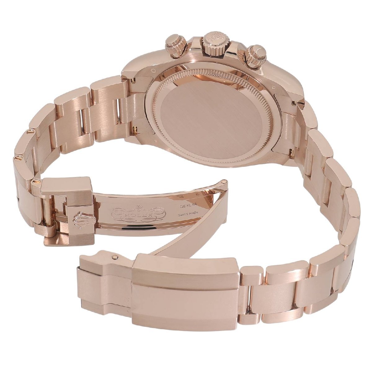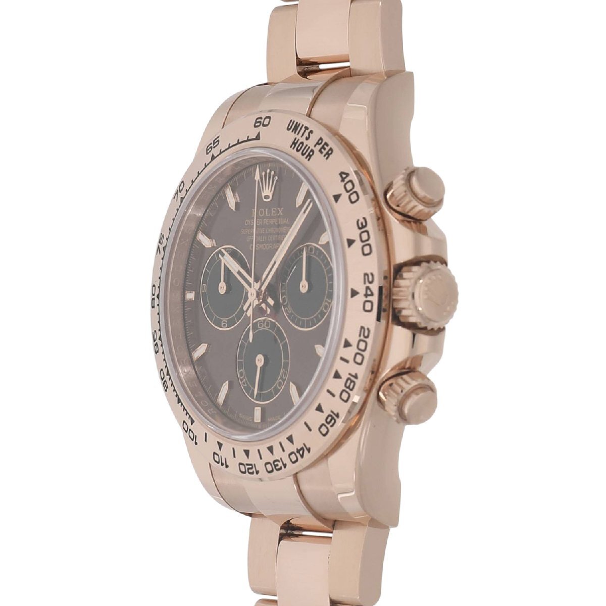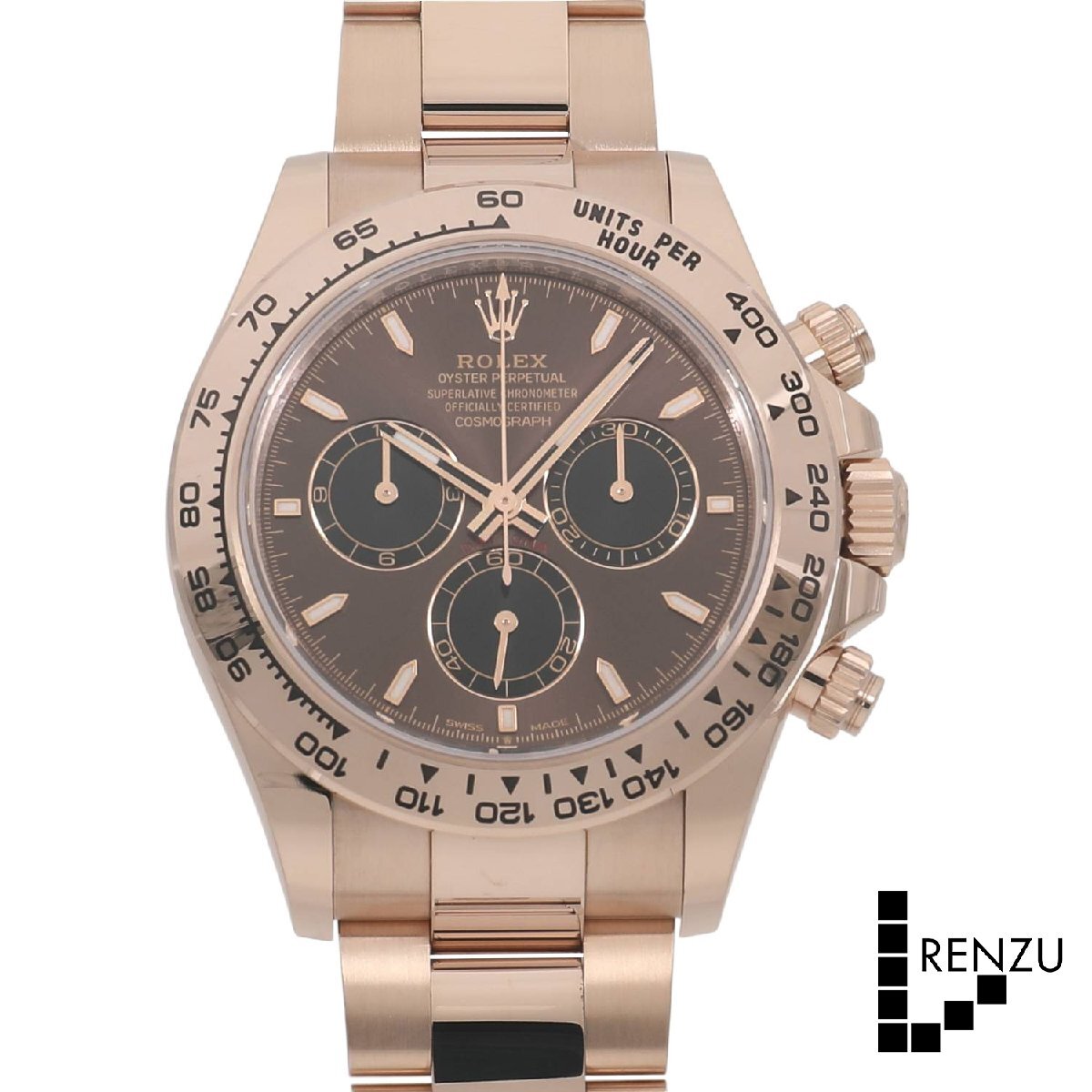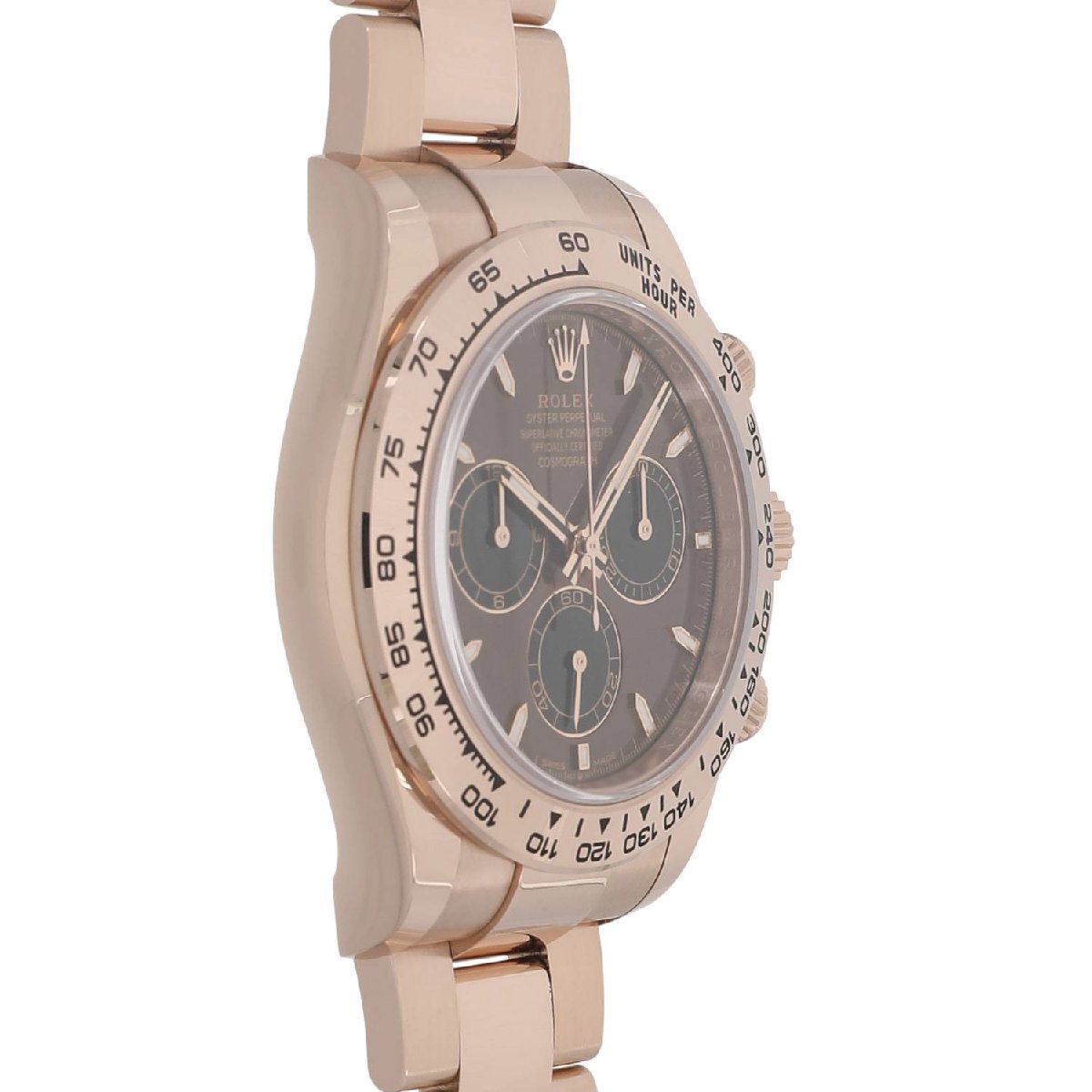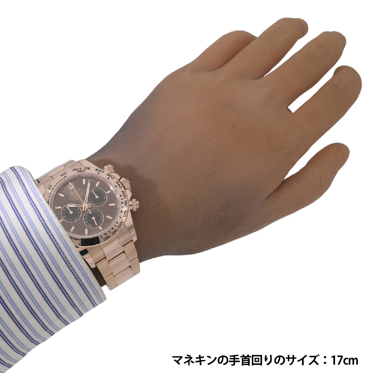 モデルについて | 2023年の新作 誕生から60周年を迎えたコスモグラフ デイトナ。新キャリバー4131に載せ替えられ、ケースやインデックスにも僅かに改良が加えられています。ラグジュアリーさを感じさせる重厚なローズゴールドのケースとブレスレット。文字盤はブライトブラックをベースにサンダストカラーのカウンターを組み合わせる事で、上品さを感じさせる印象に仕上がっています。6時のカウンター上にペイントされた赤いDAYTONAの文字がアクセントとなり、クールさも感じさせます。 |