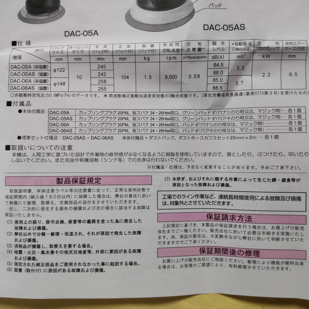 【未使用】空研 吸塵式デュアルアクションサンダー DAM-05AS(B)