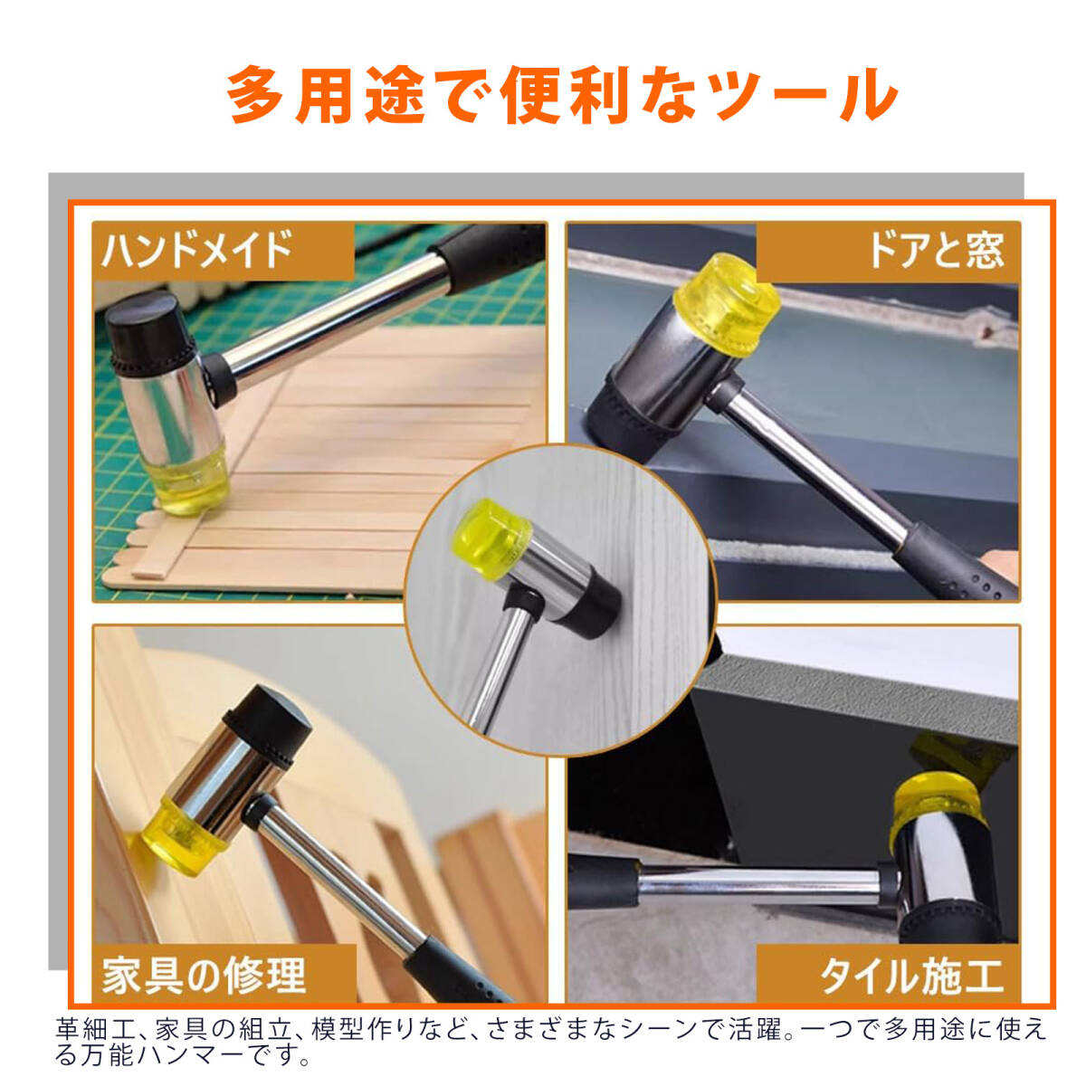 ハンマー ゴムハンマー ショックレスハンマー トンカチ 金槌 電工ハンマー 大ハンマー 両頭タイプ 軽量 ラバーグリップ付き DIY工具 ;6784;