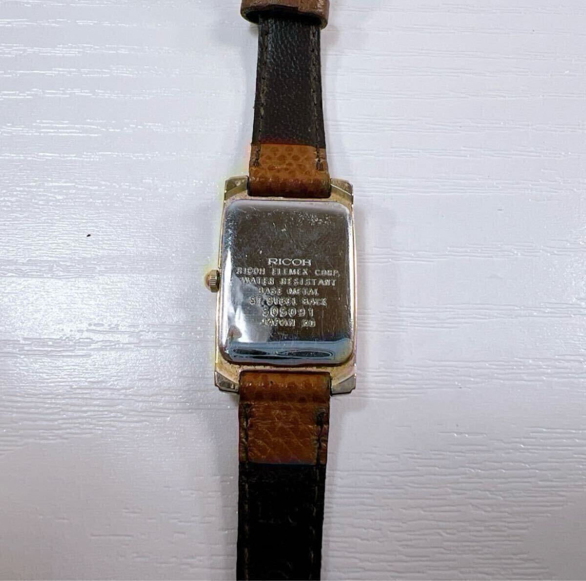 314【中古】RICOH Conte リコー レディース腕時計 アナログ クオーツ 3針 スクエアフェイス レザーベルト ブラウン 動作未確認 現状品